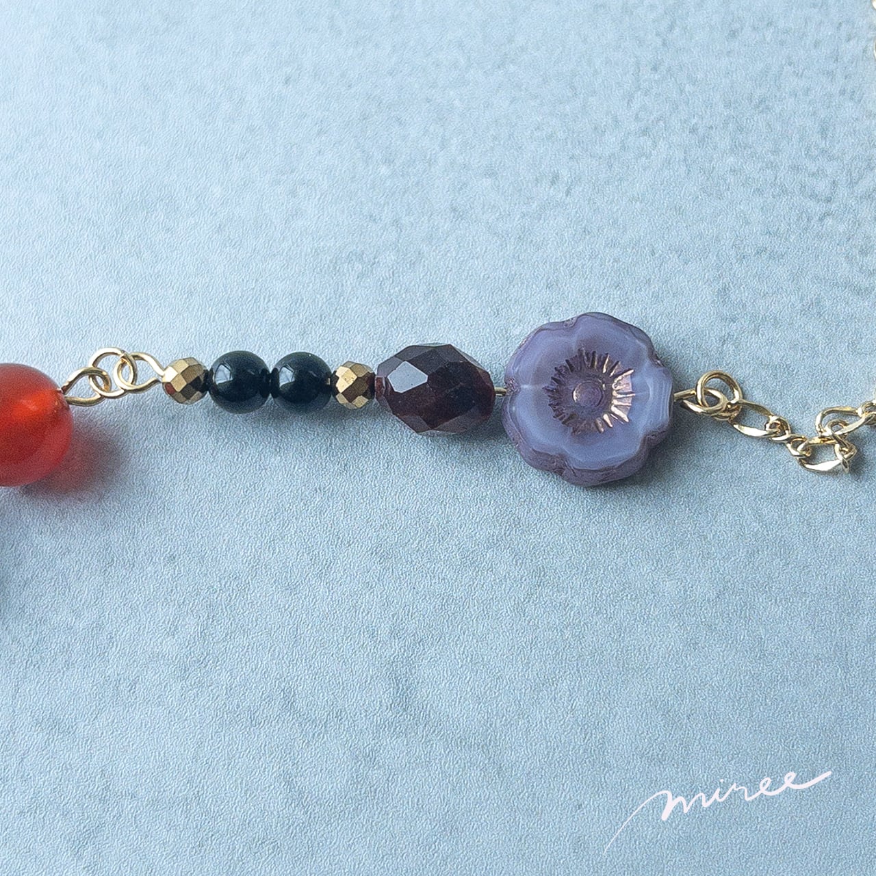 ・使用パーツ:レッドジャスパー、カーネリアン、タイガーアイ、ヘマタイト、モリオン、チェコビーズ(花)