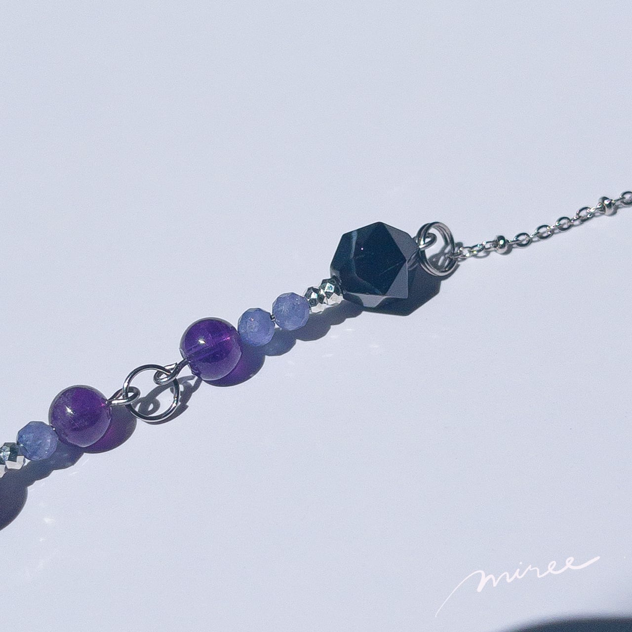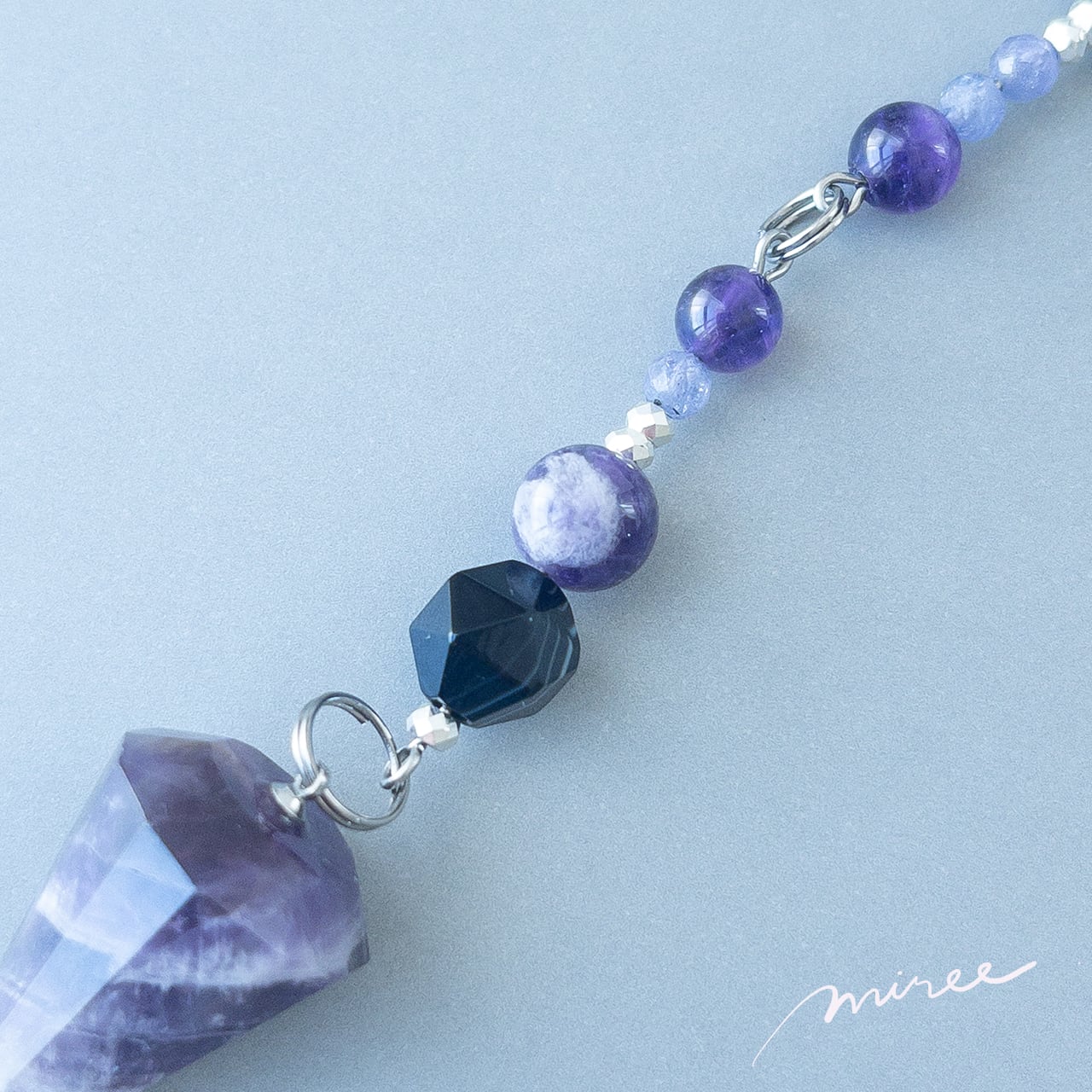 ・使用パーツ:ドリームアメジスト、ストライプオニキス、アメジスト、ヘマタイト、タンザナイト、モリオン、チェコビーズ