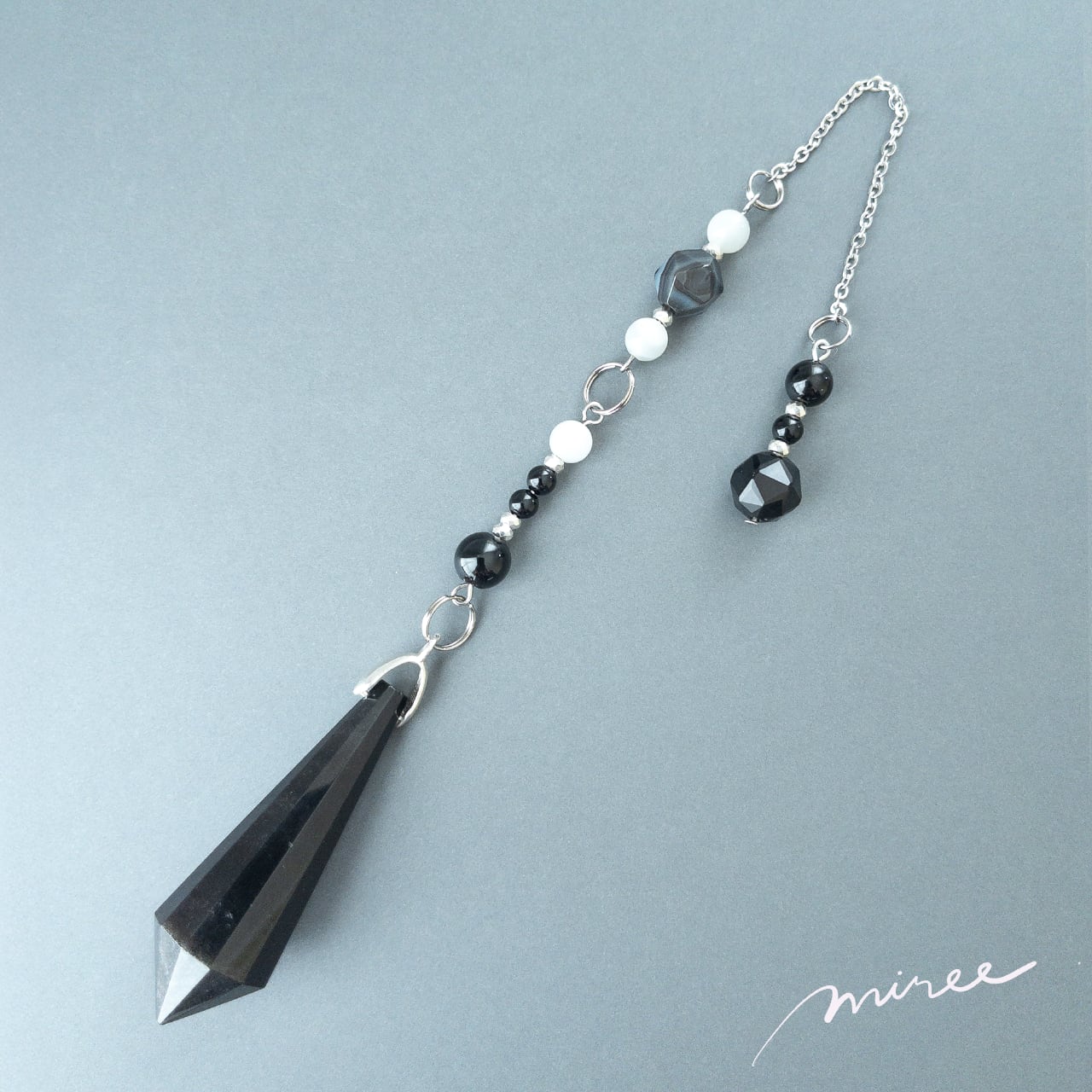 スイッチが入る決断ペンデュラム【シルバーオブシディアン×モリオン】silver obsidian pendulum_96
