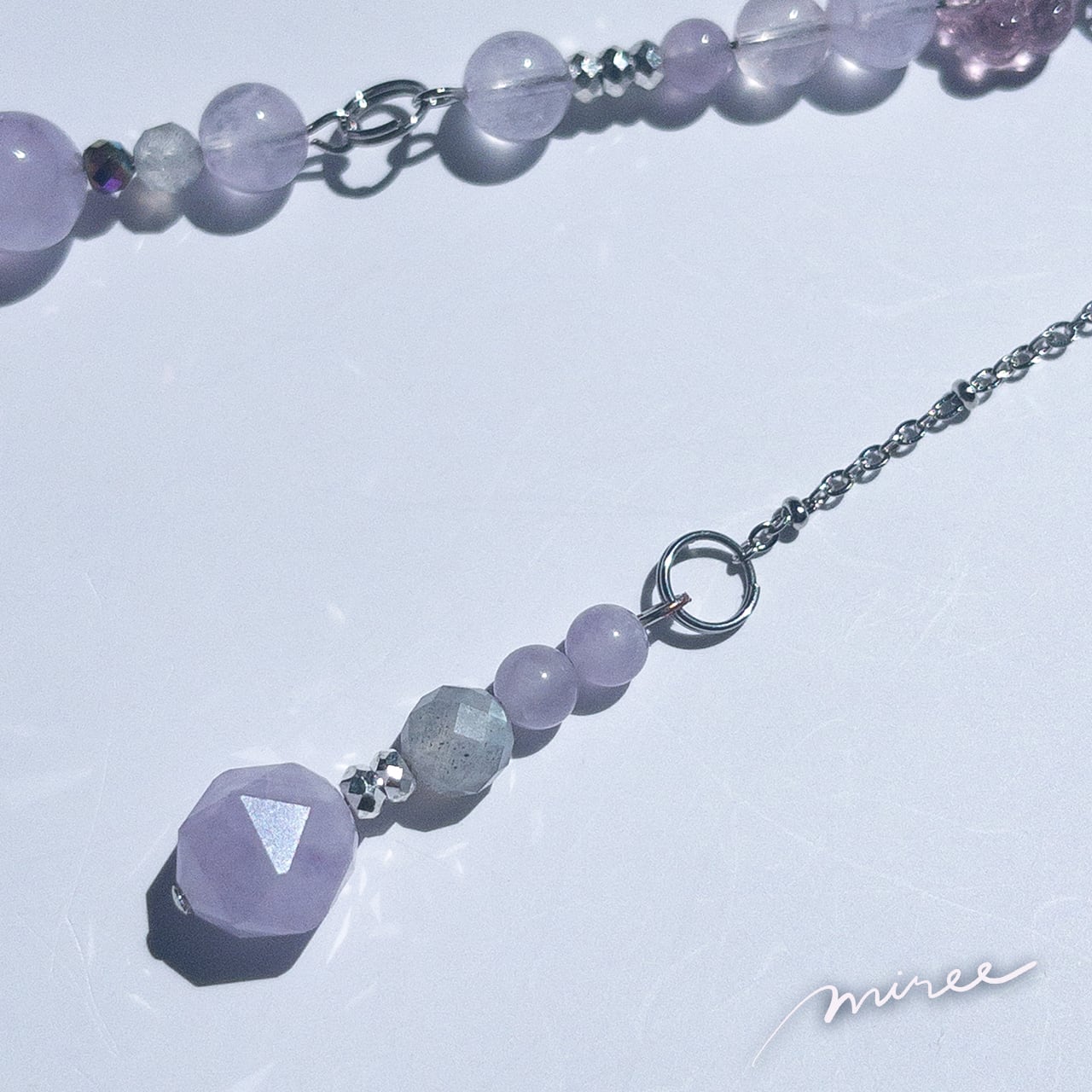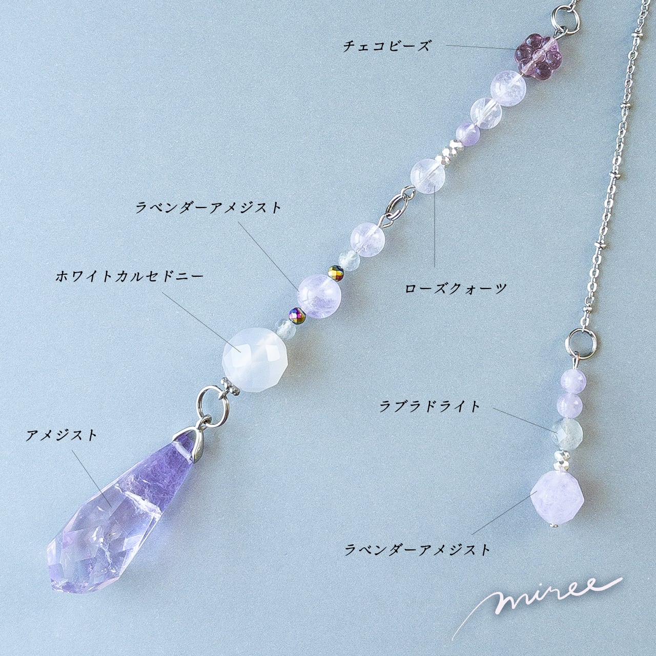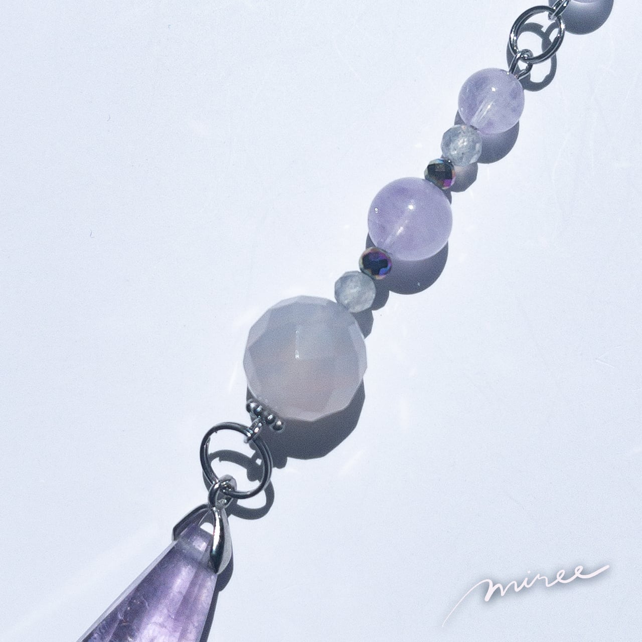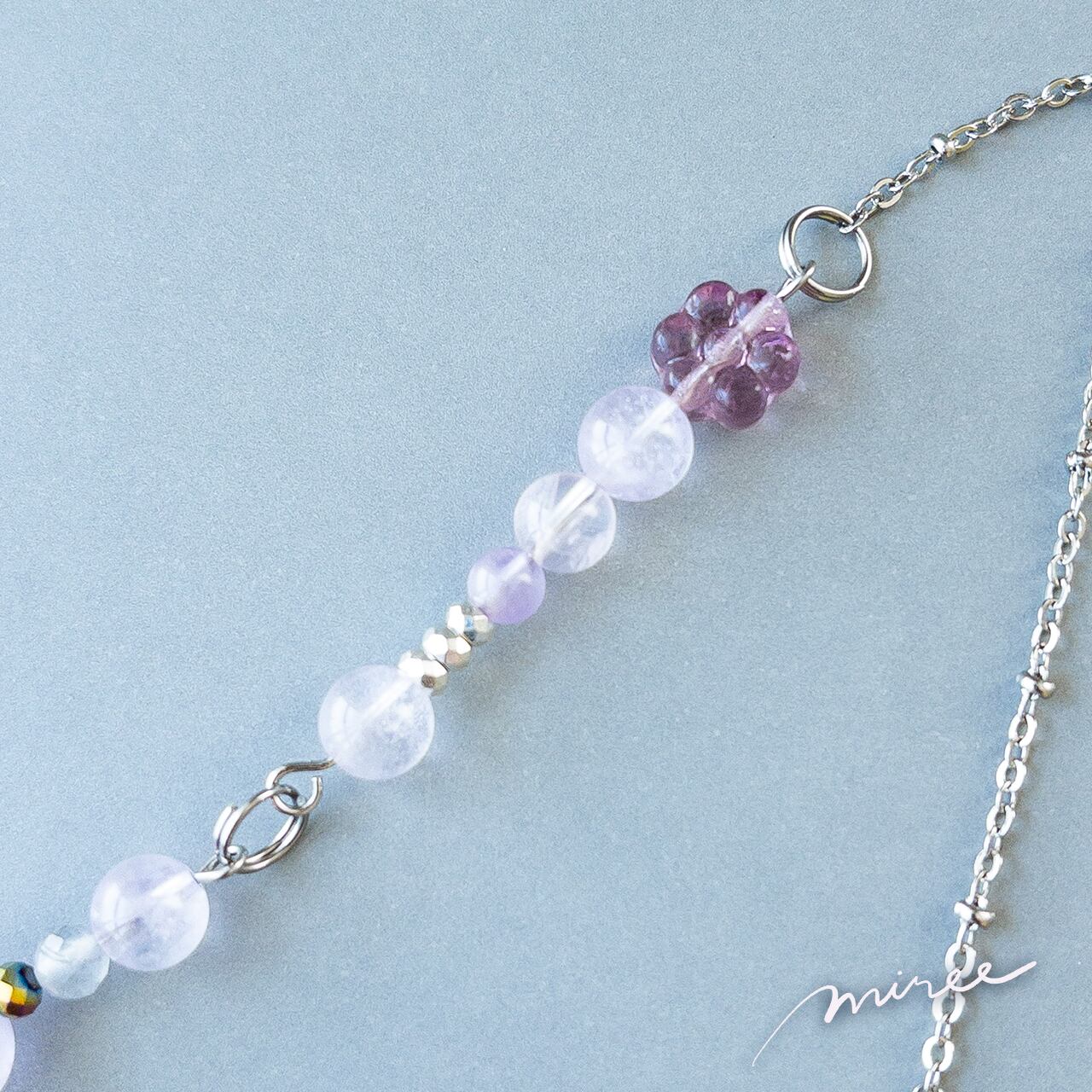 ・使用パーツ:アメジスト、ホワイトカルセドニー、ローズクォーツ、ラベンダーアメジスト、ラブラドライト、ヘマタイト、チェコビーズ