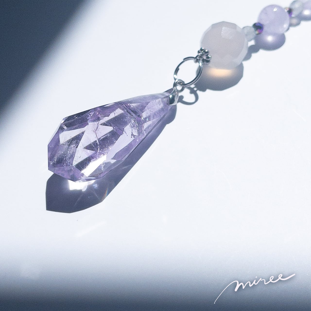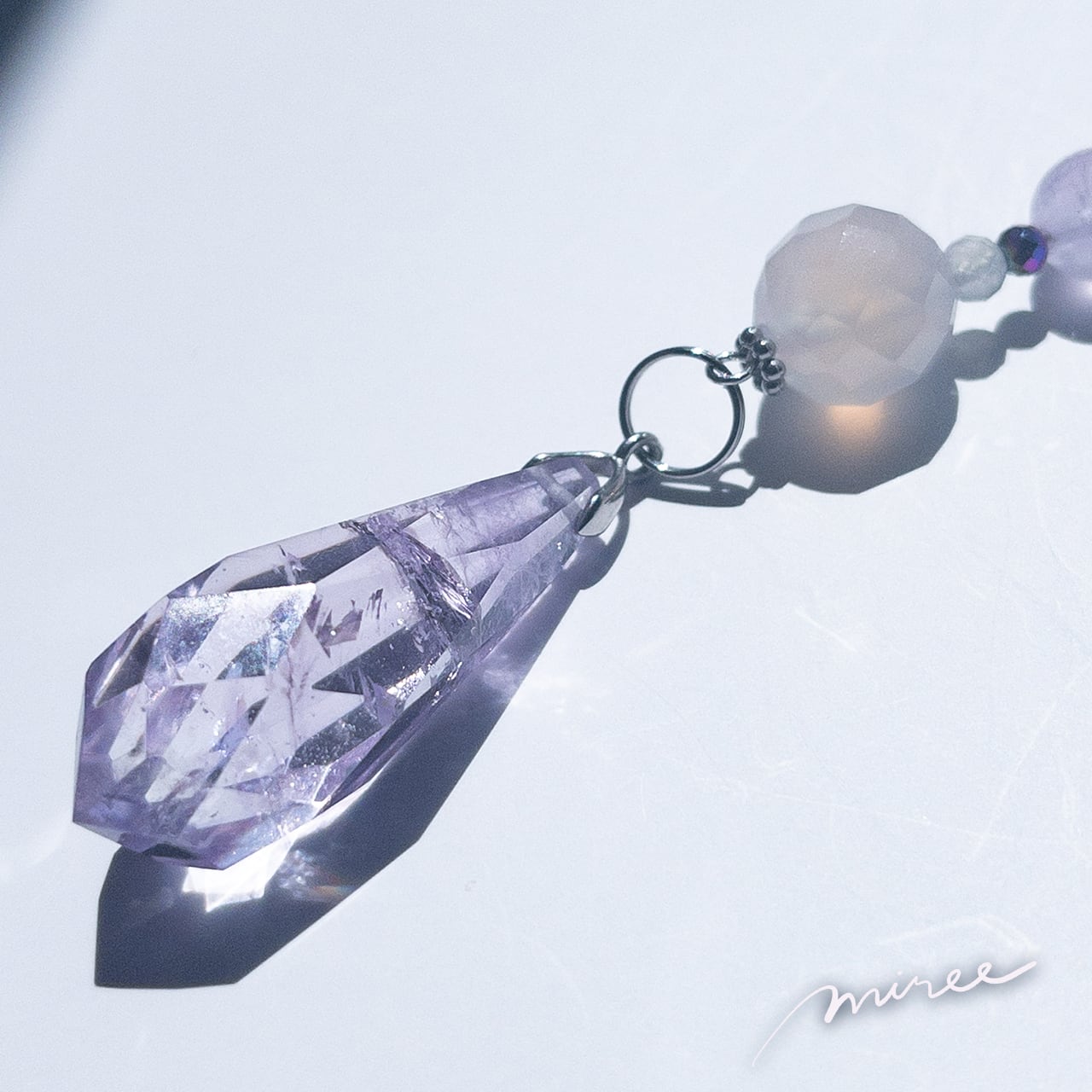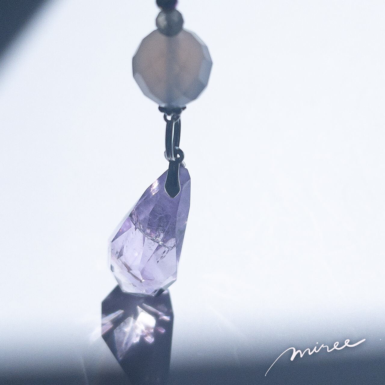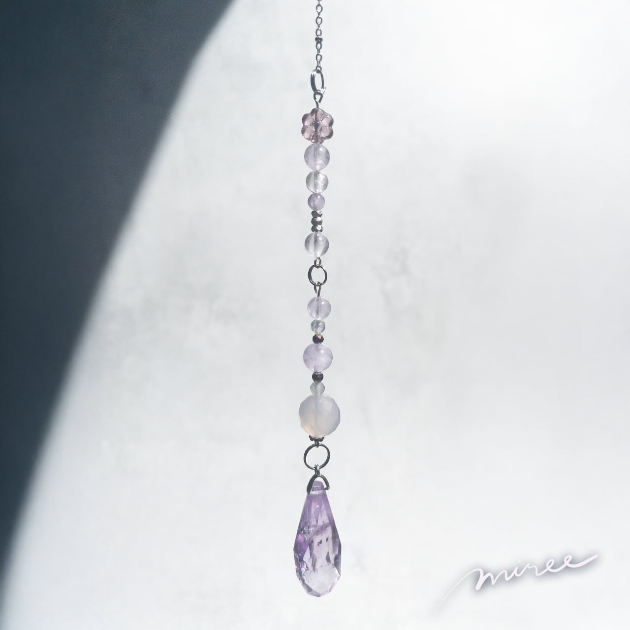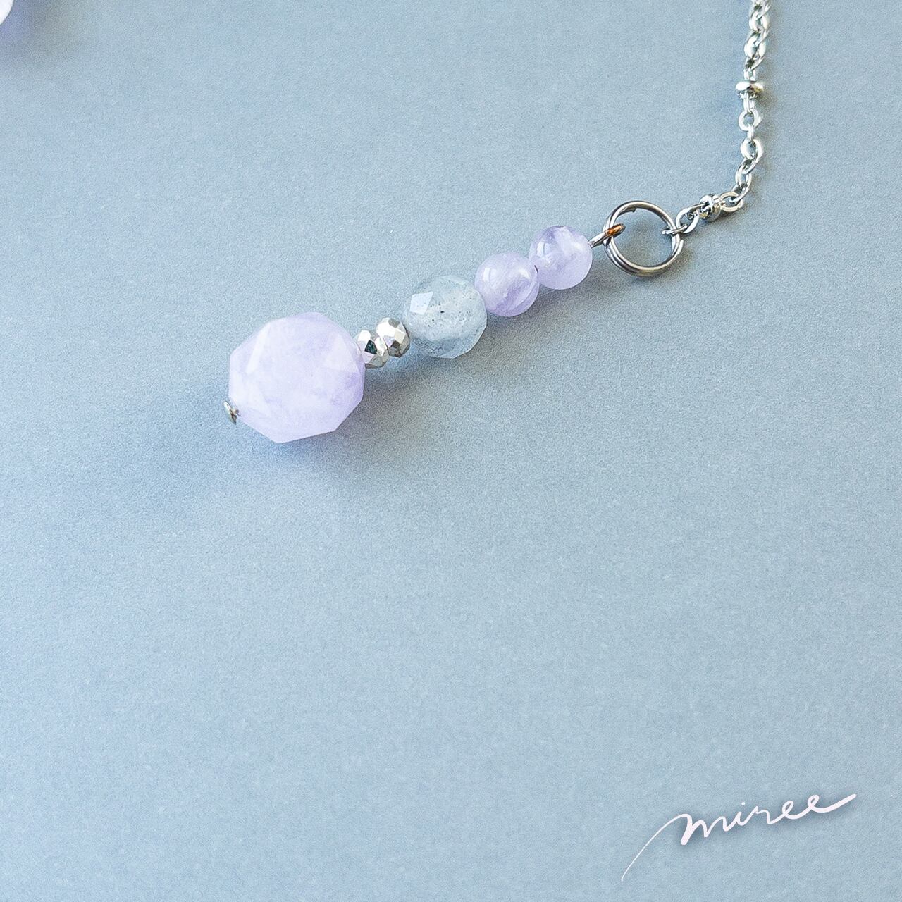 ・使用パーツ:アメジスト、ホワイトカルセドニー、ローズクォーツ、ラベンダーアメジスト、ラブラドライト、ヘマタイト、チェコビーズ