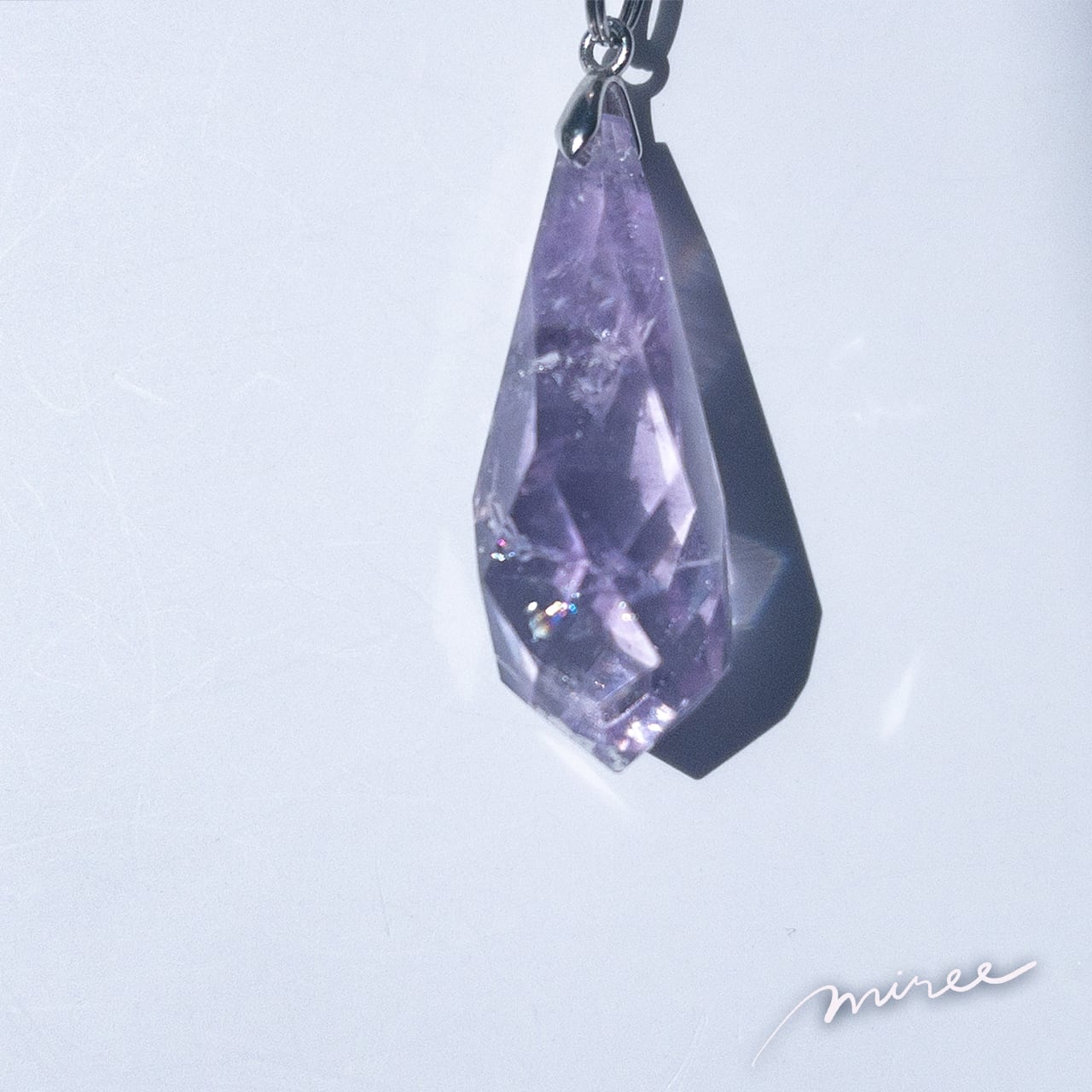虹を宿すアメジストが、光のプリズムのように直感をひらきます。