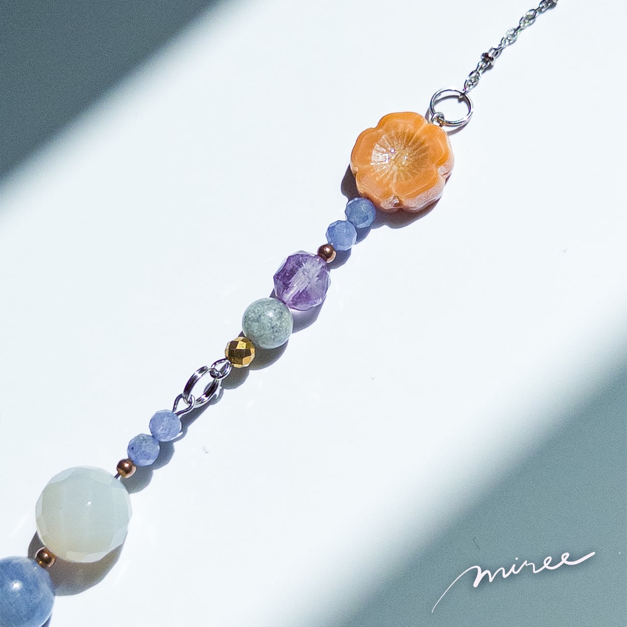 ・使用パーツ:オレンジアベンチュリン、タンザナイト、ホワイトカルセドニー、ヘマタイト、トロレアイト、スーパーセブン、クリスタル(水晶)、チェコビーズ