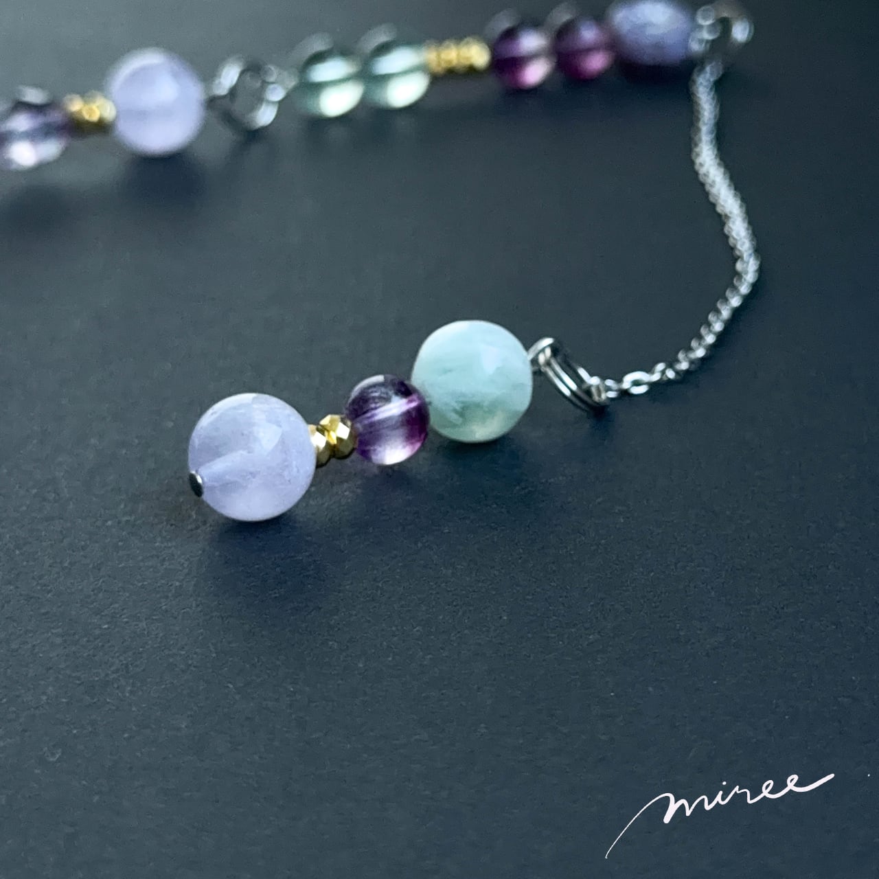 ・使用パーツ:フローライト、エンジェルフェザーフローライト、ラブラドライト、ラベンダーアメジスト、ヘマタイト、チェコビーズ