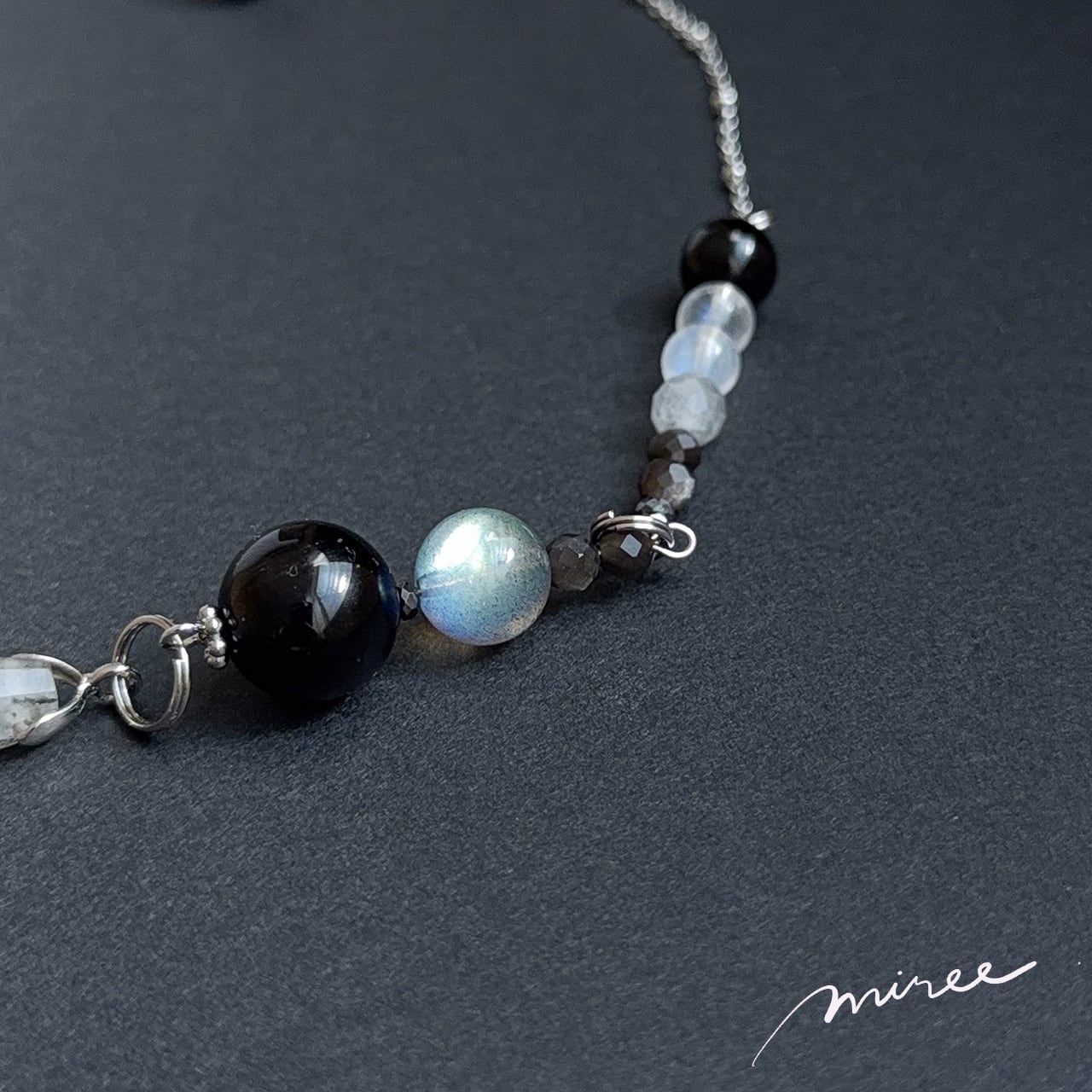 ・使用パーツ:ラブラドライト、シルバーオブシディアン、ムーンストーン、オニキス、ヘマタイト