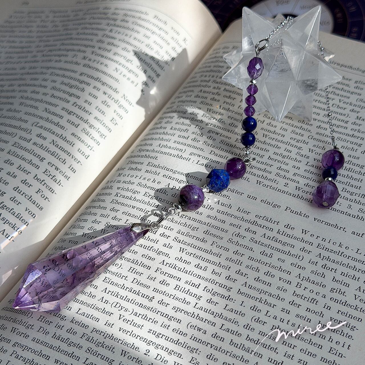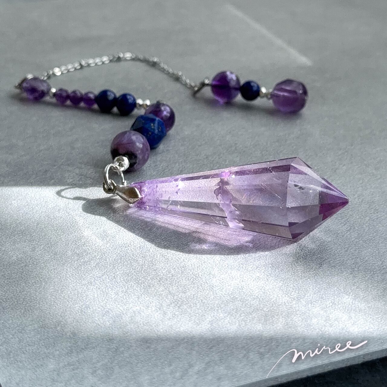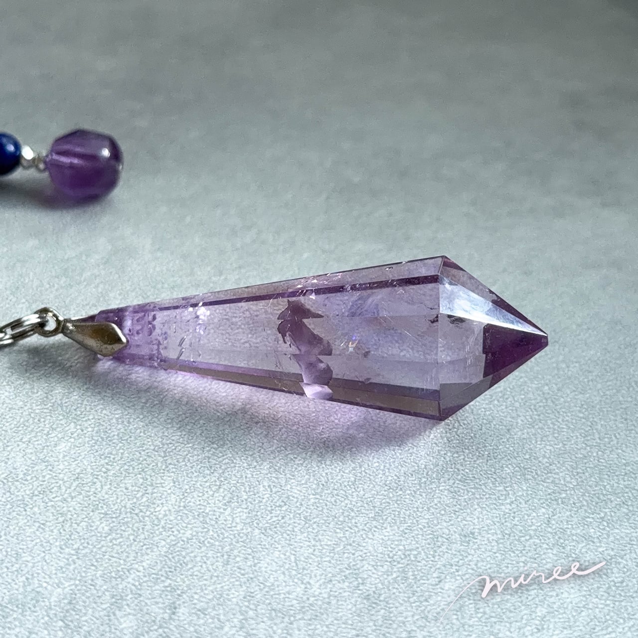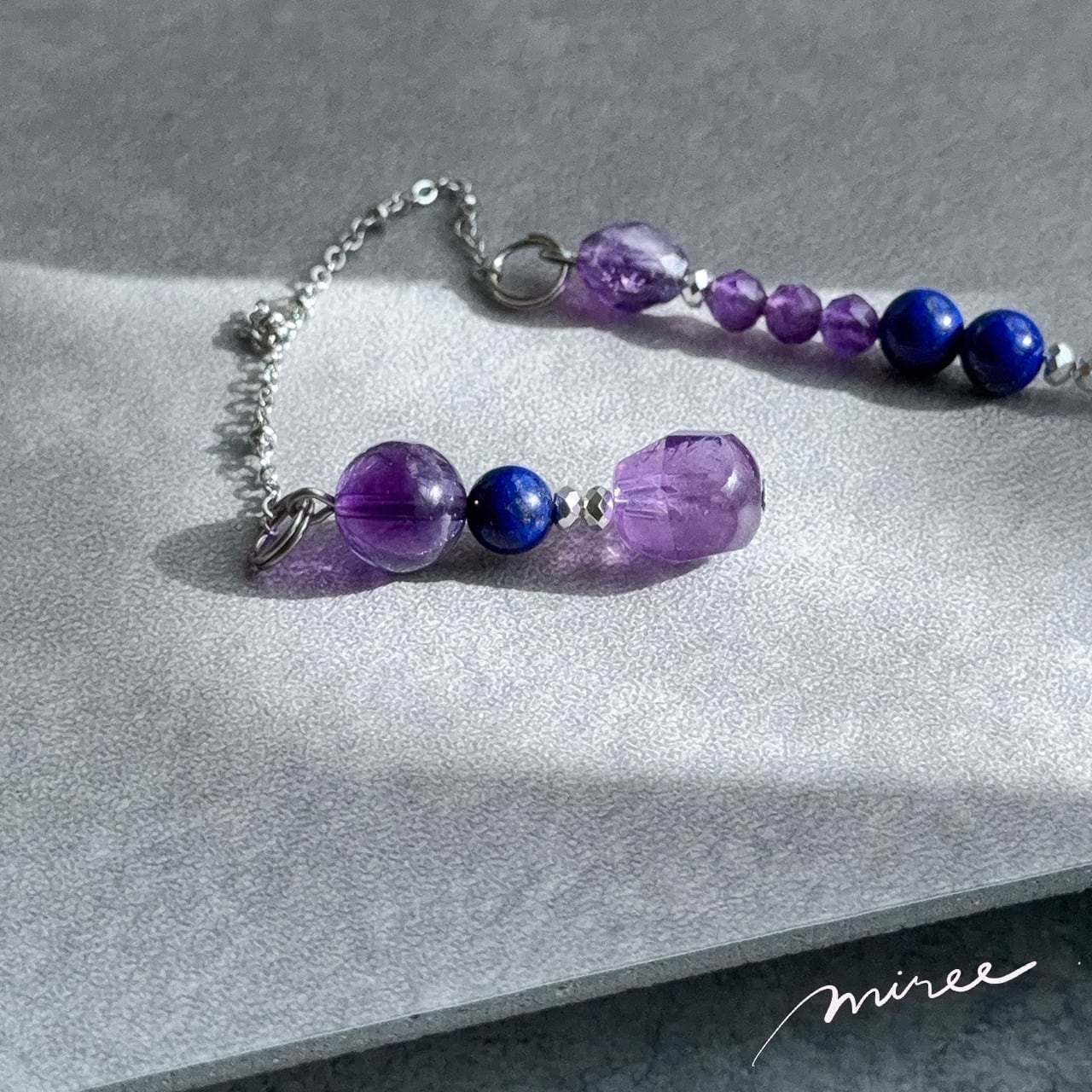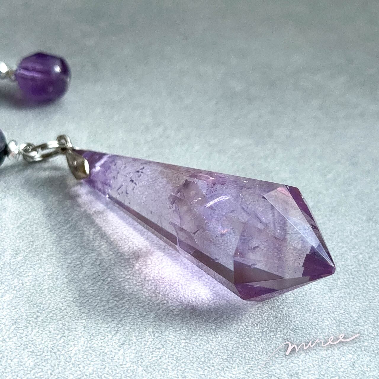 ・使用パーツ:ラベンダーアメジスト(虹入り)、チャロアイト、ラピスラズリ、ヘマタイト