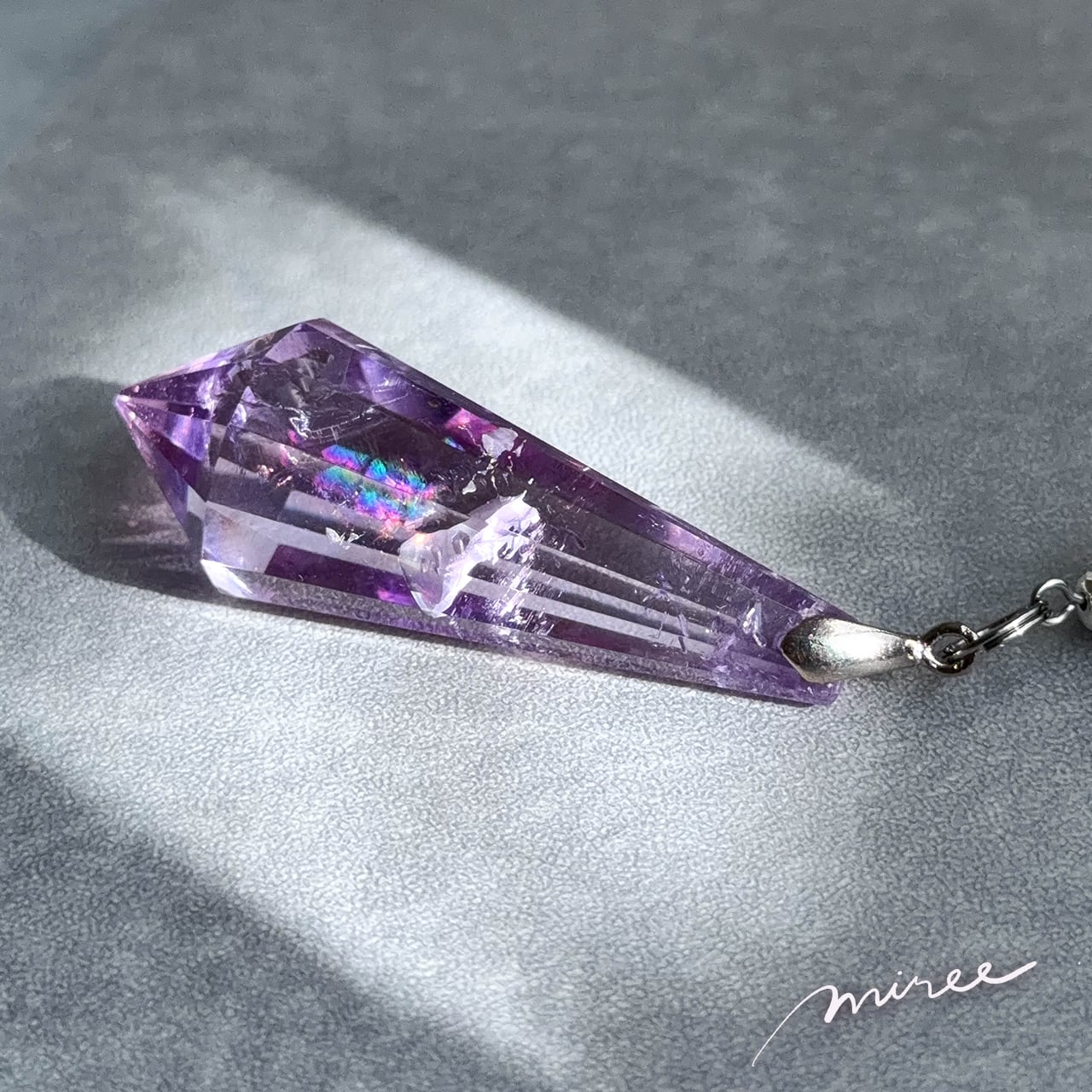 中心にあるのは、虹を宿したラベンダーアメジスト。