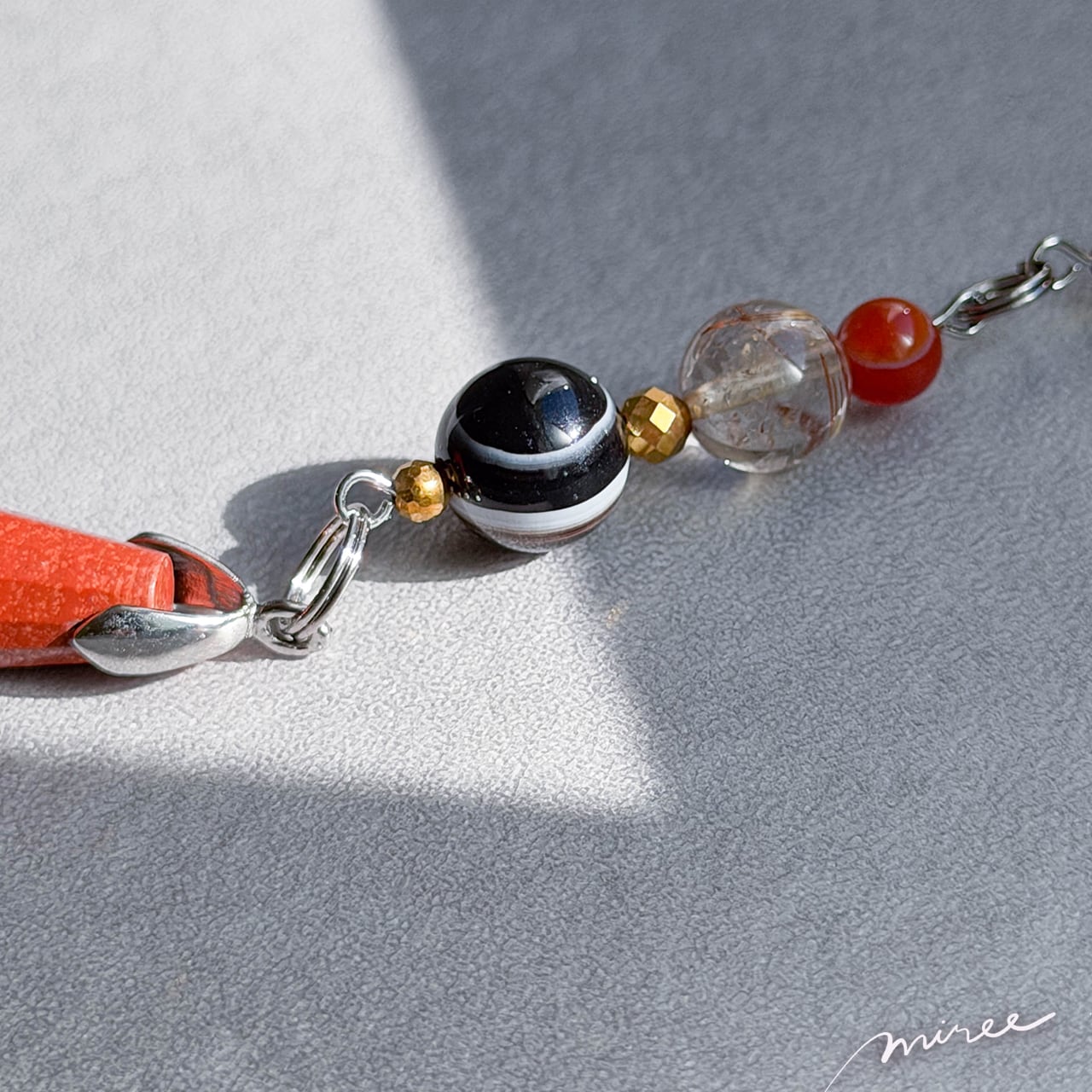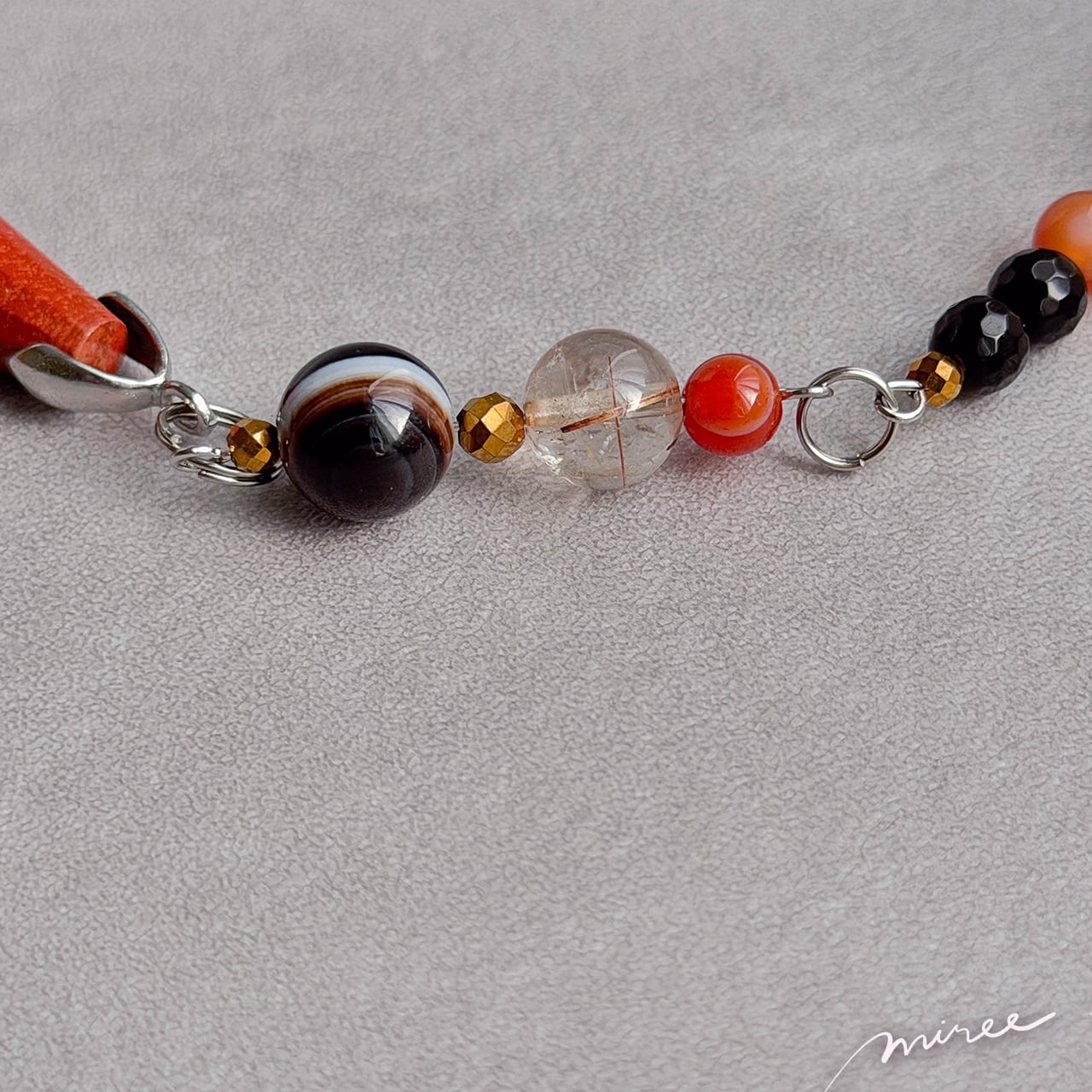 ・使用パーツ:レッドジャスパー、天眼石、ルチルクォーツ、レッドサードオニキス、オニキス、ヘマタイト、チェコビーズ