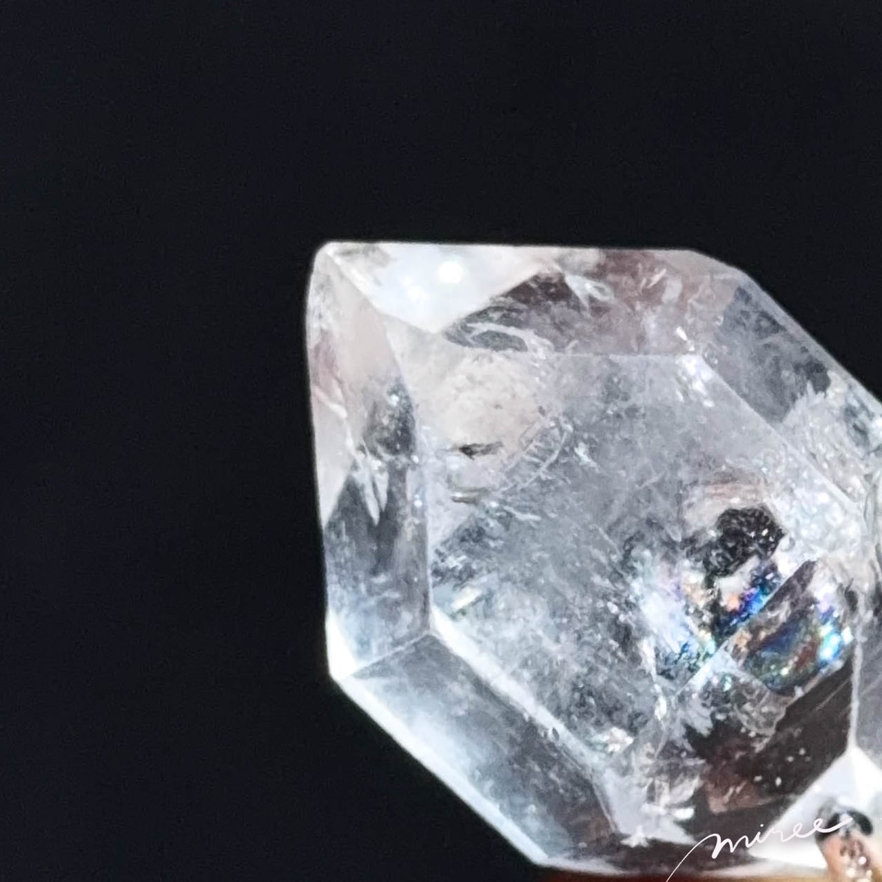 虹を宿したハーキマーダイヤモンドは、眠っていた光を映し出し、