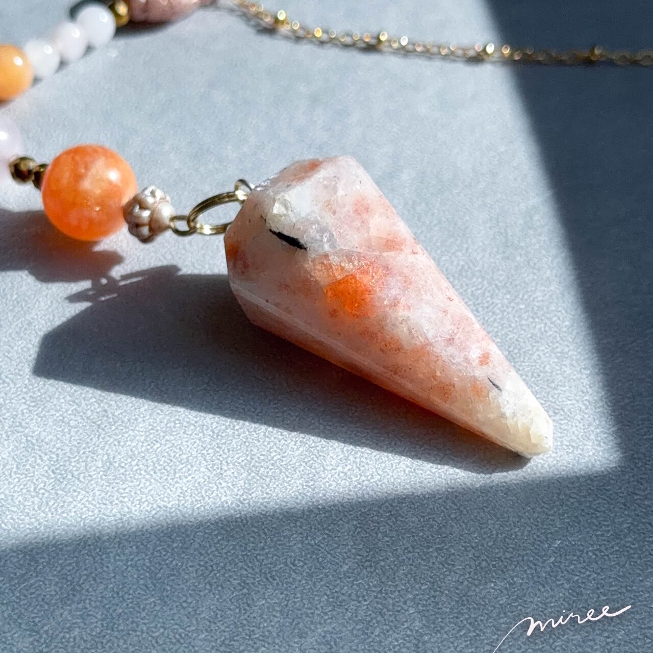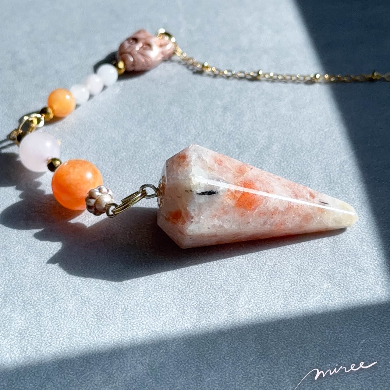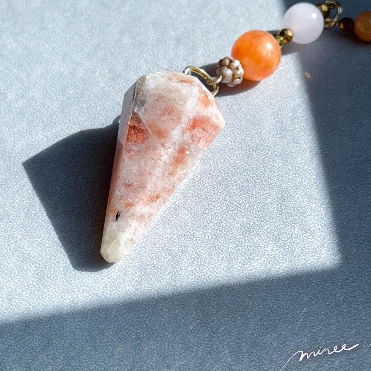 心に太陽を宿すペンデュラム【サンストーン×ローズクォーツ】sunstone pendulum_182