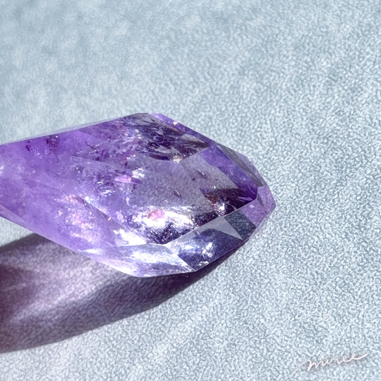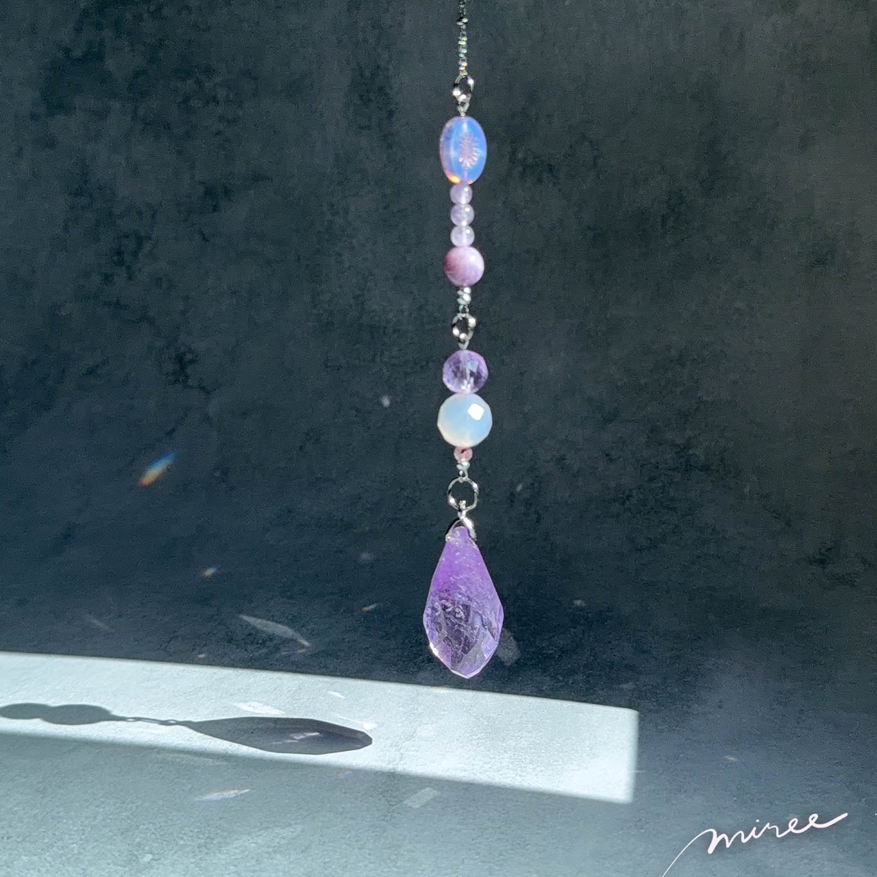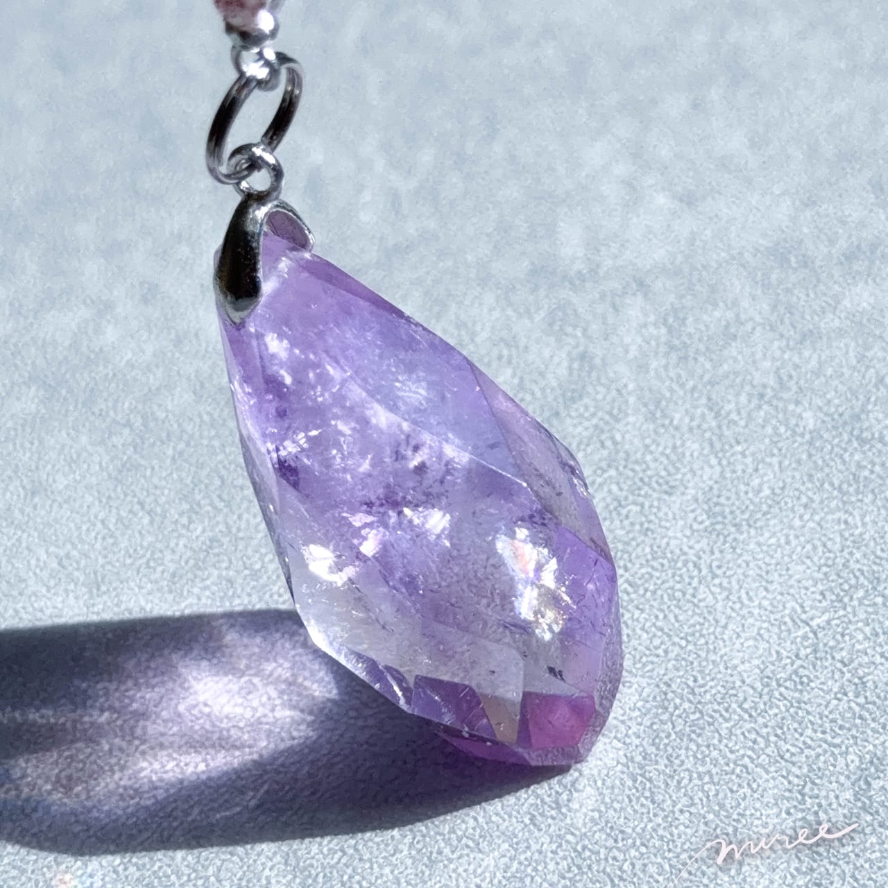 光にかざすとかすかに浮かぶ、ラベンダーアメジストの虹。