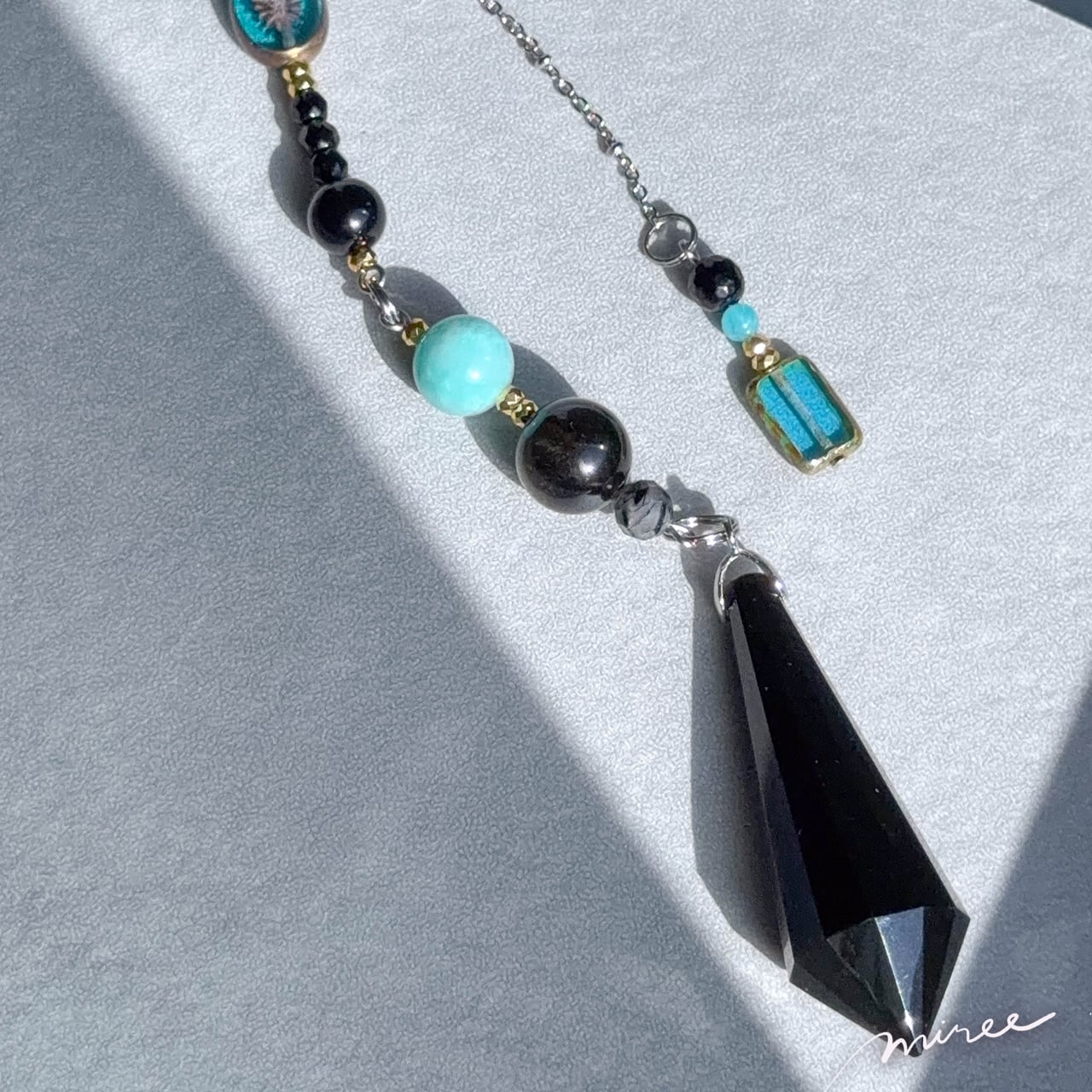 隠れていた本音に光をあてるペンデュラム【ゴールデンオブシディアン×アマゾナイト】golden obsidian pendulum_185
