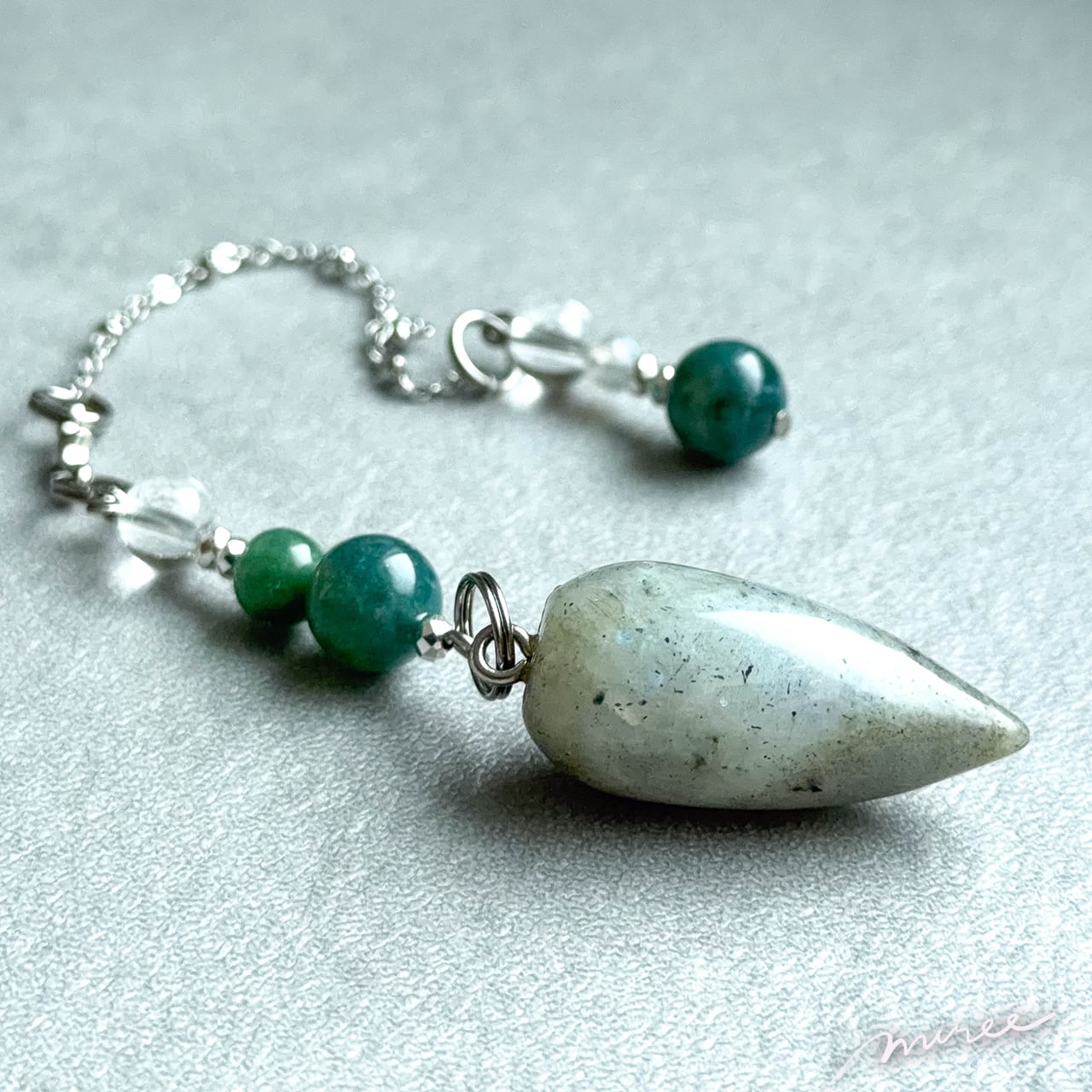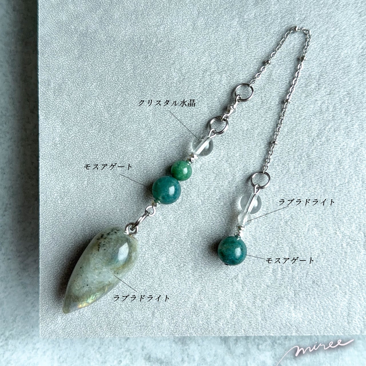 【mini】迷わない私を育てるミニペンデュラム【ラブラドライト×モスアゲート】labradorite pendulum_191