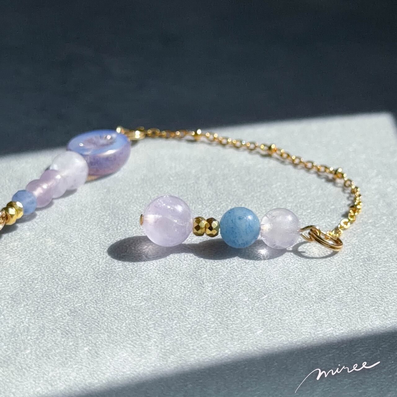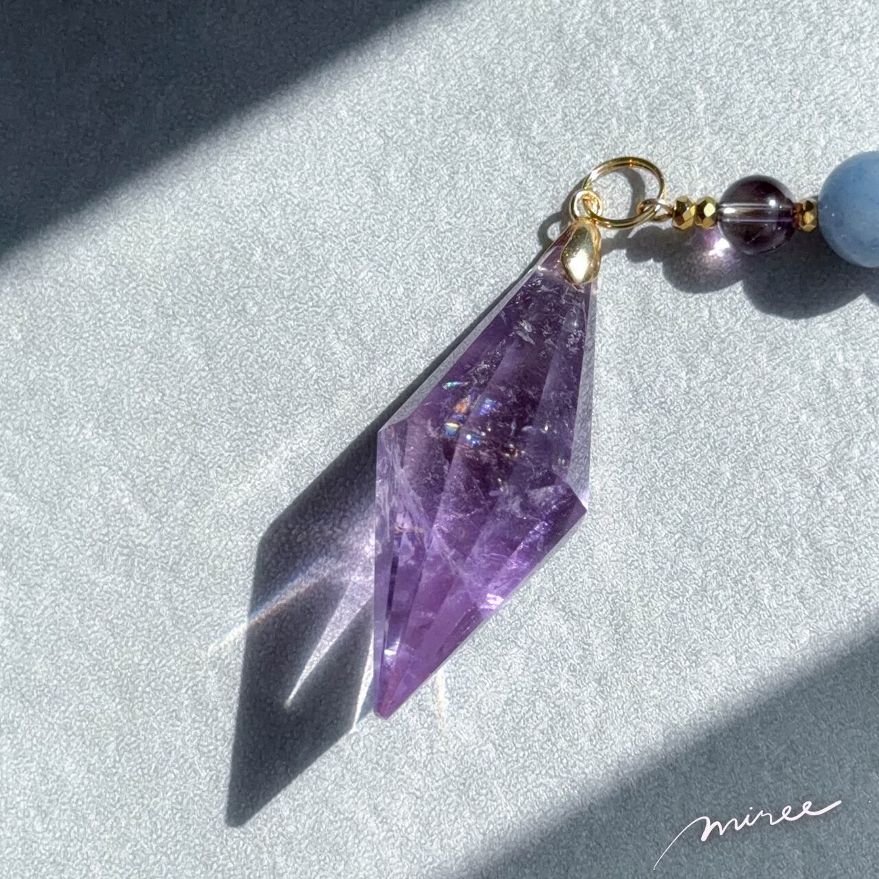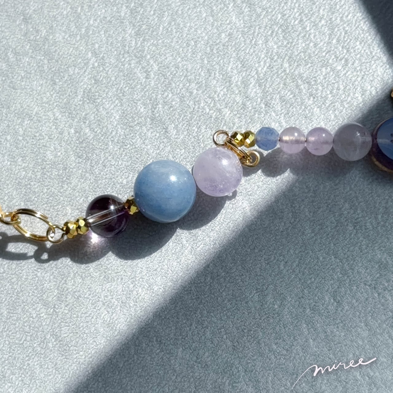 ・使用パーツ:ラベンダーアメジスト、スーパーセブン、ブルーアベンチュリン、タンザナイト、ヘマタイト、チェコビーズ