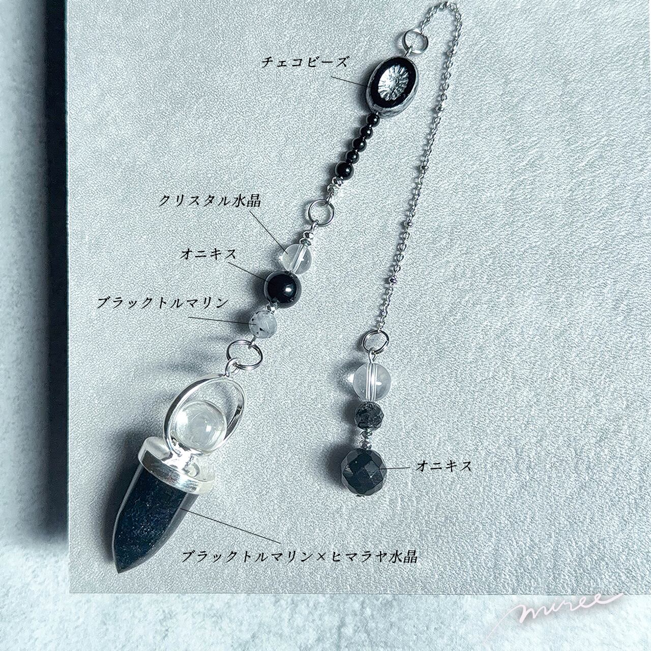 ・使用パーツ:ブラックトルマリン×ヒマラヤ水晶、オニキス、クリスタル水晶、ヘマタイト、チェコビーズ