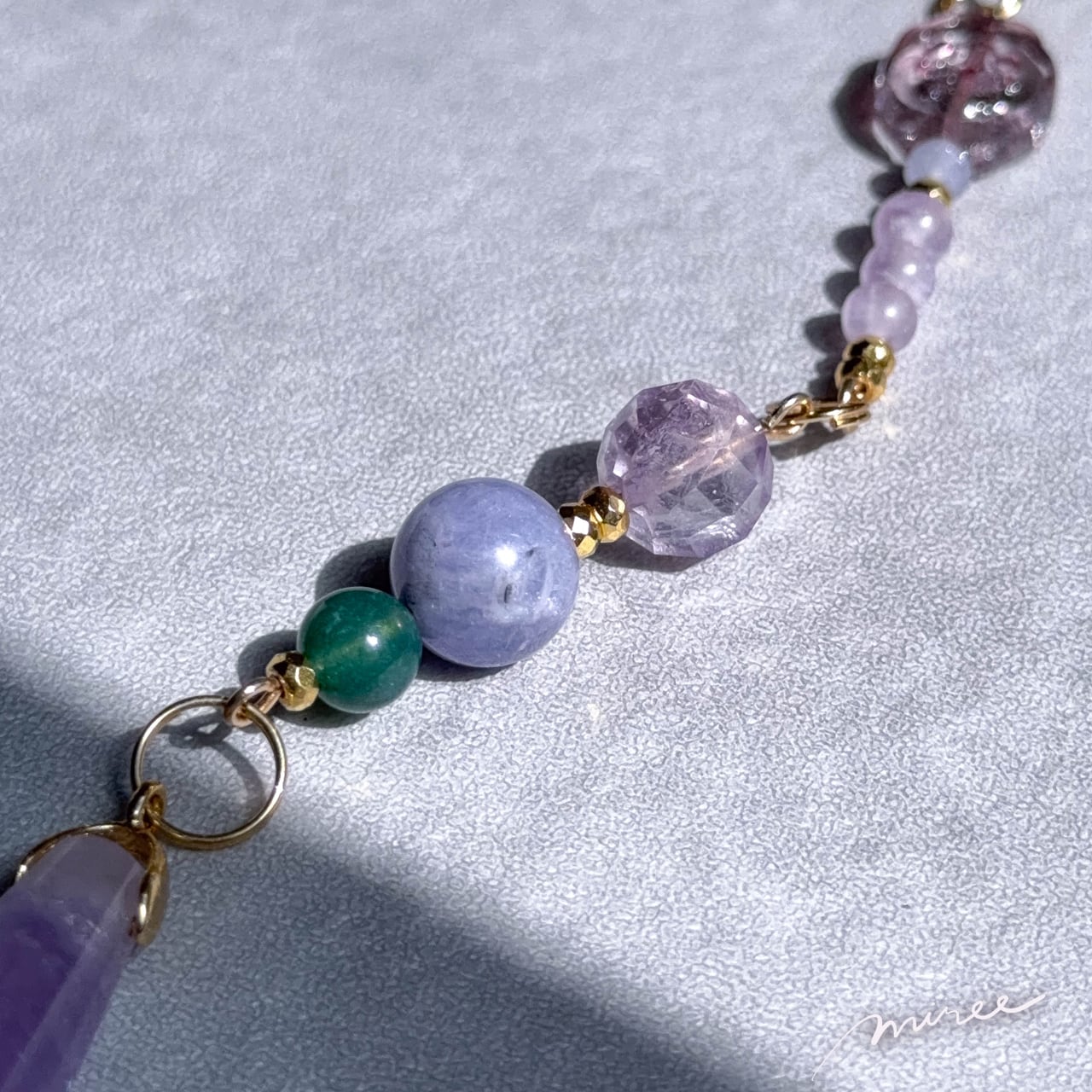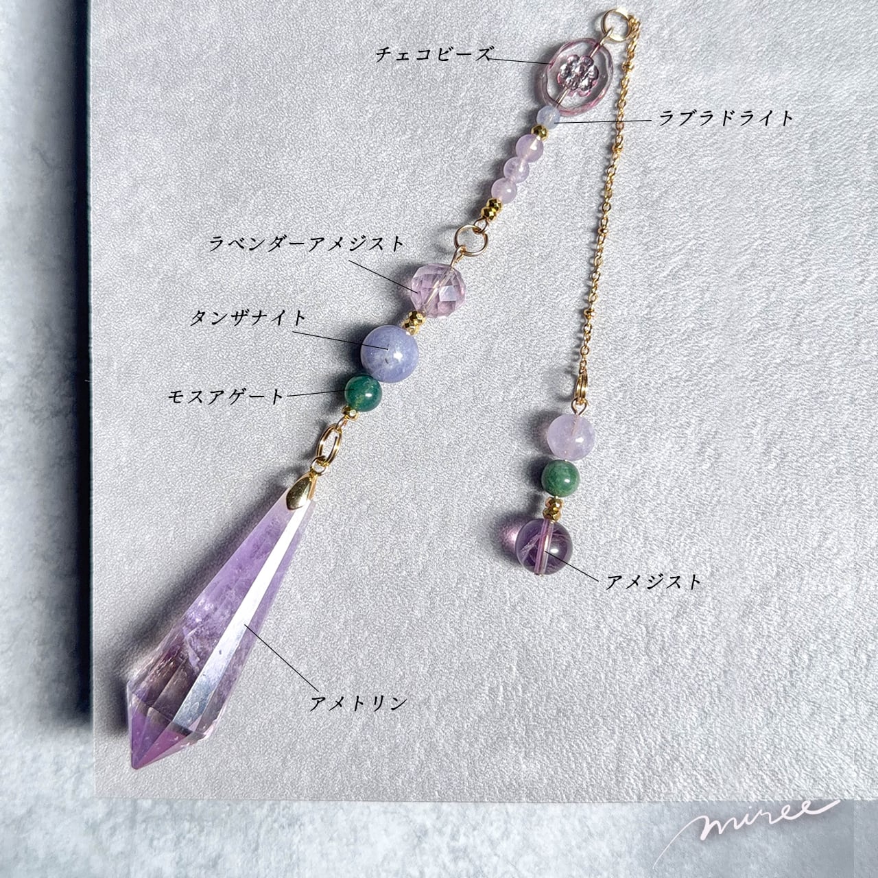 ・使用パーツ:アメトリン、モスアゲート、タンザナイト、ラベンダーアメジスト、ラブラドライト、アメジスト、ヘマタイト、チェコビーズ