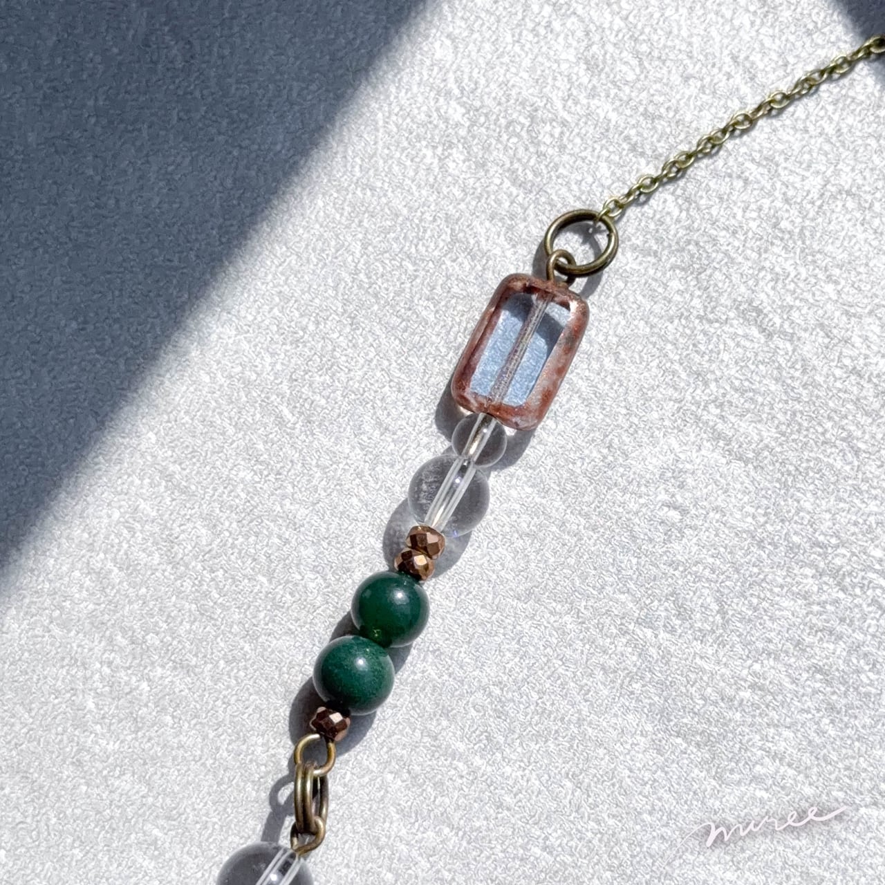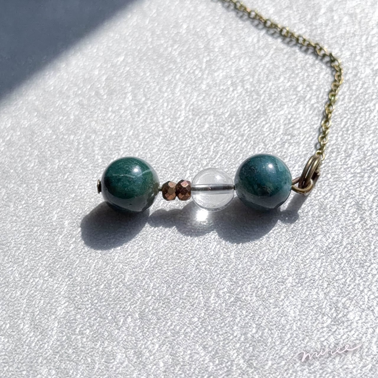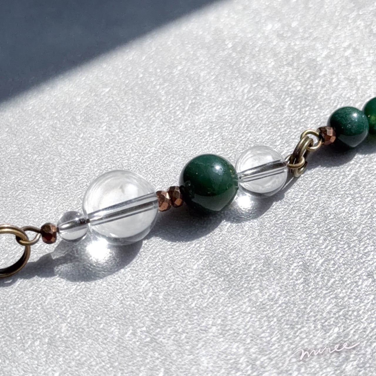 ・使用パーツ:モスアゲート、クリスタル水晶、ヘマタイト、チェコビーズ