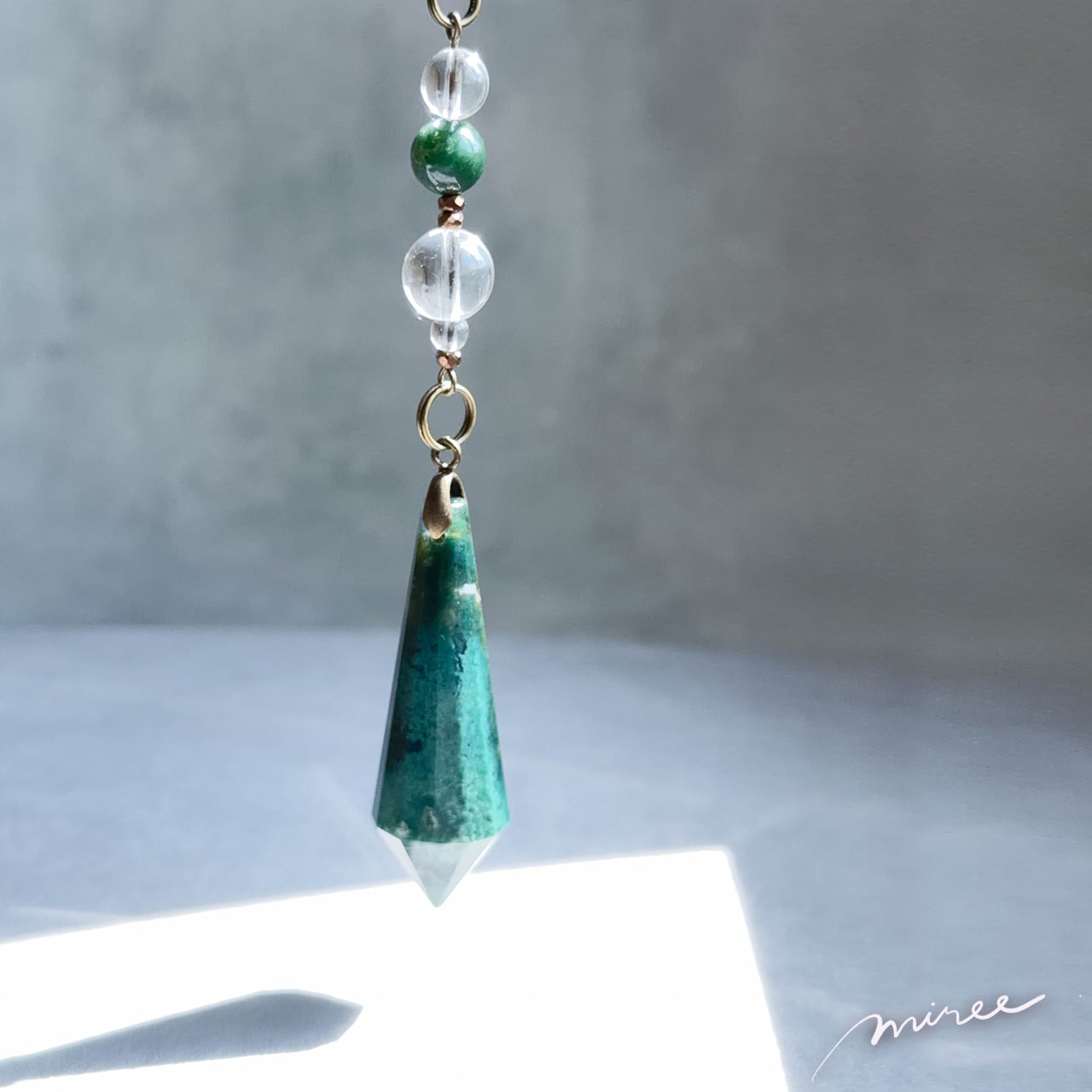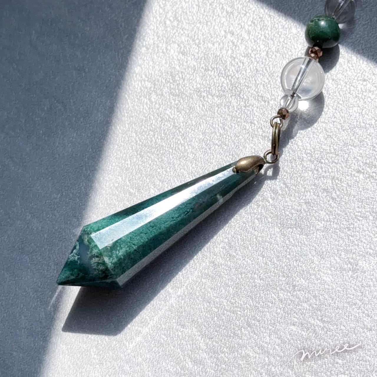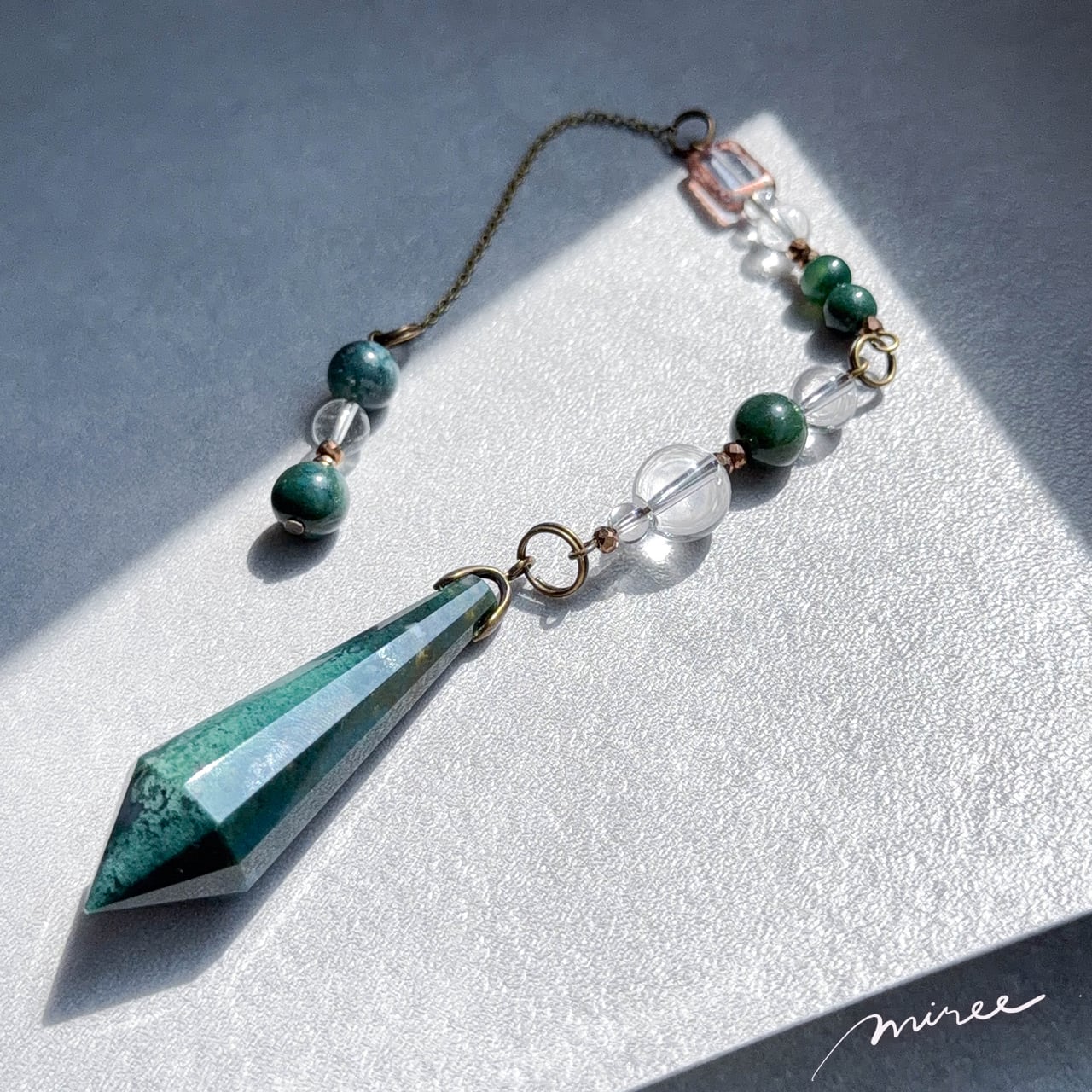 人生が自然に育ち始めるペンデュラム【モスアゲート×クリスタル水晶】moss agate pendulum