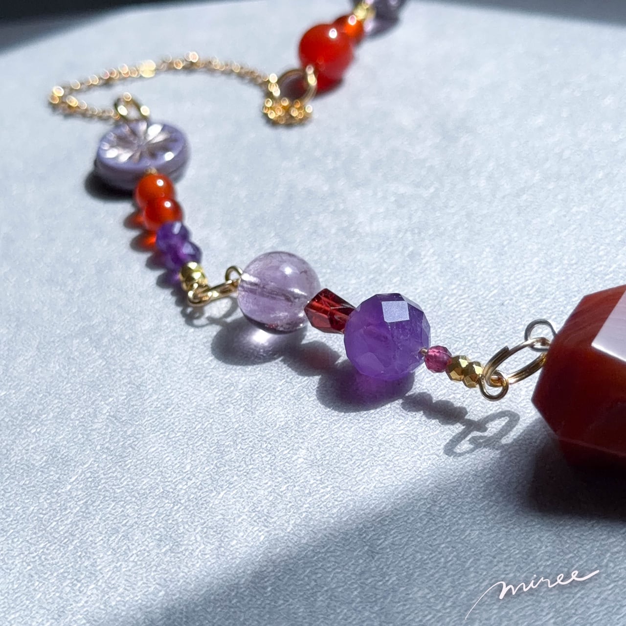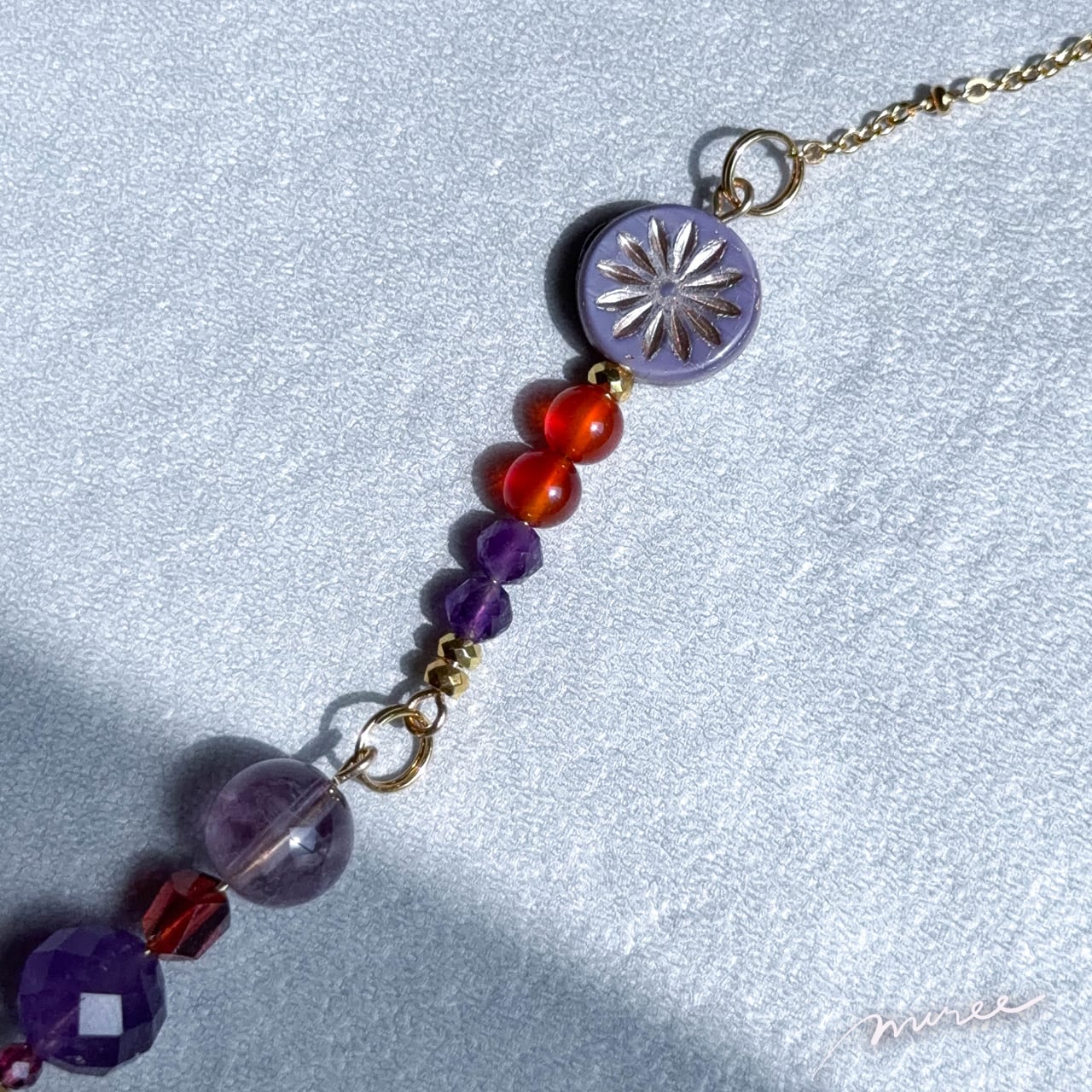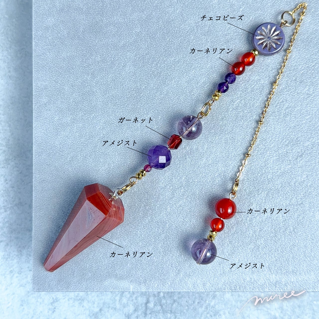 ・使用パーツ:カーネリアン、アメジスト、ガーネット、ヘマタイト、チェコビーズ