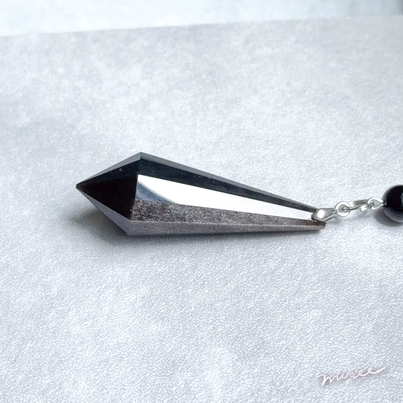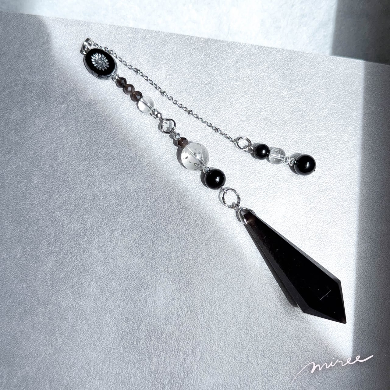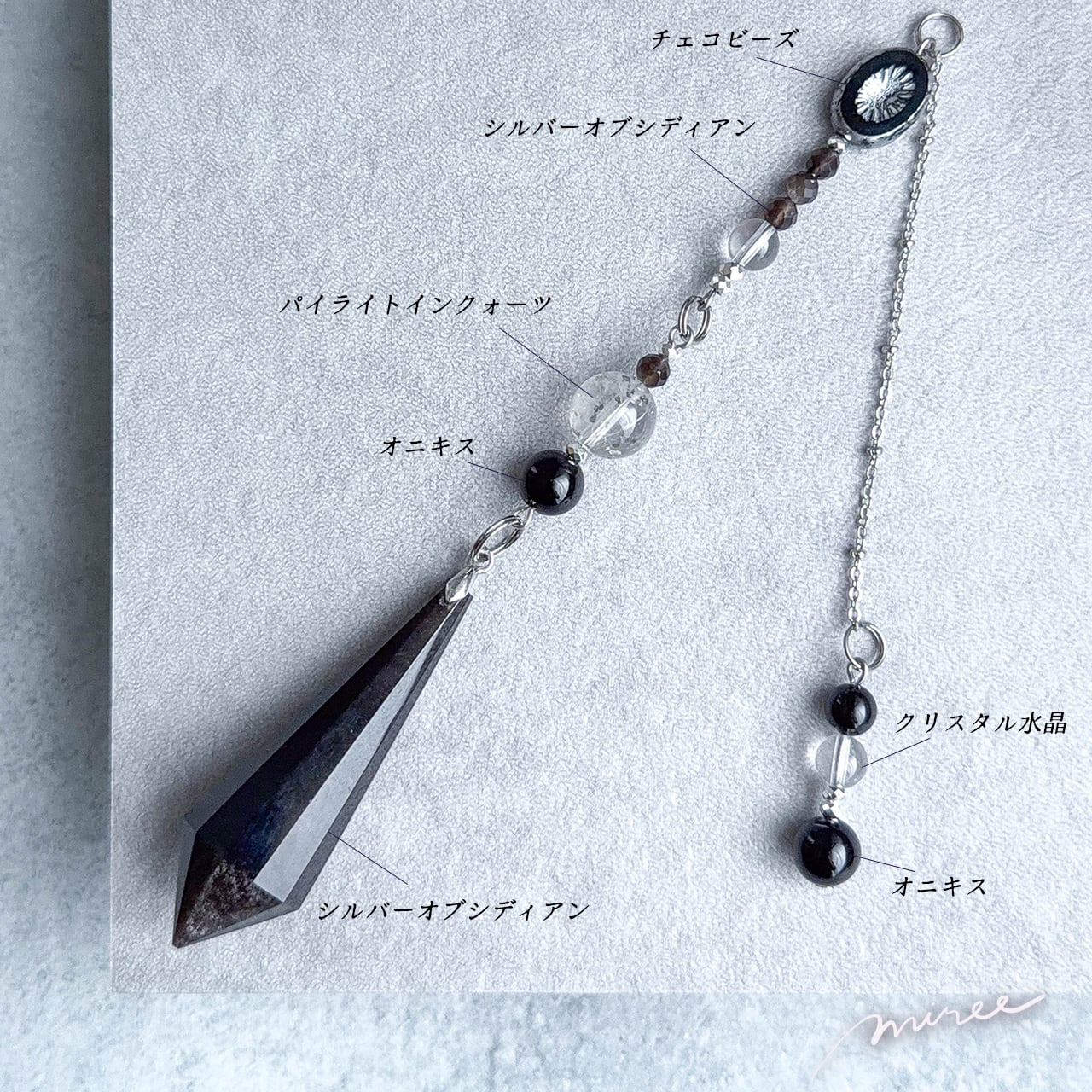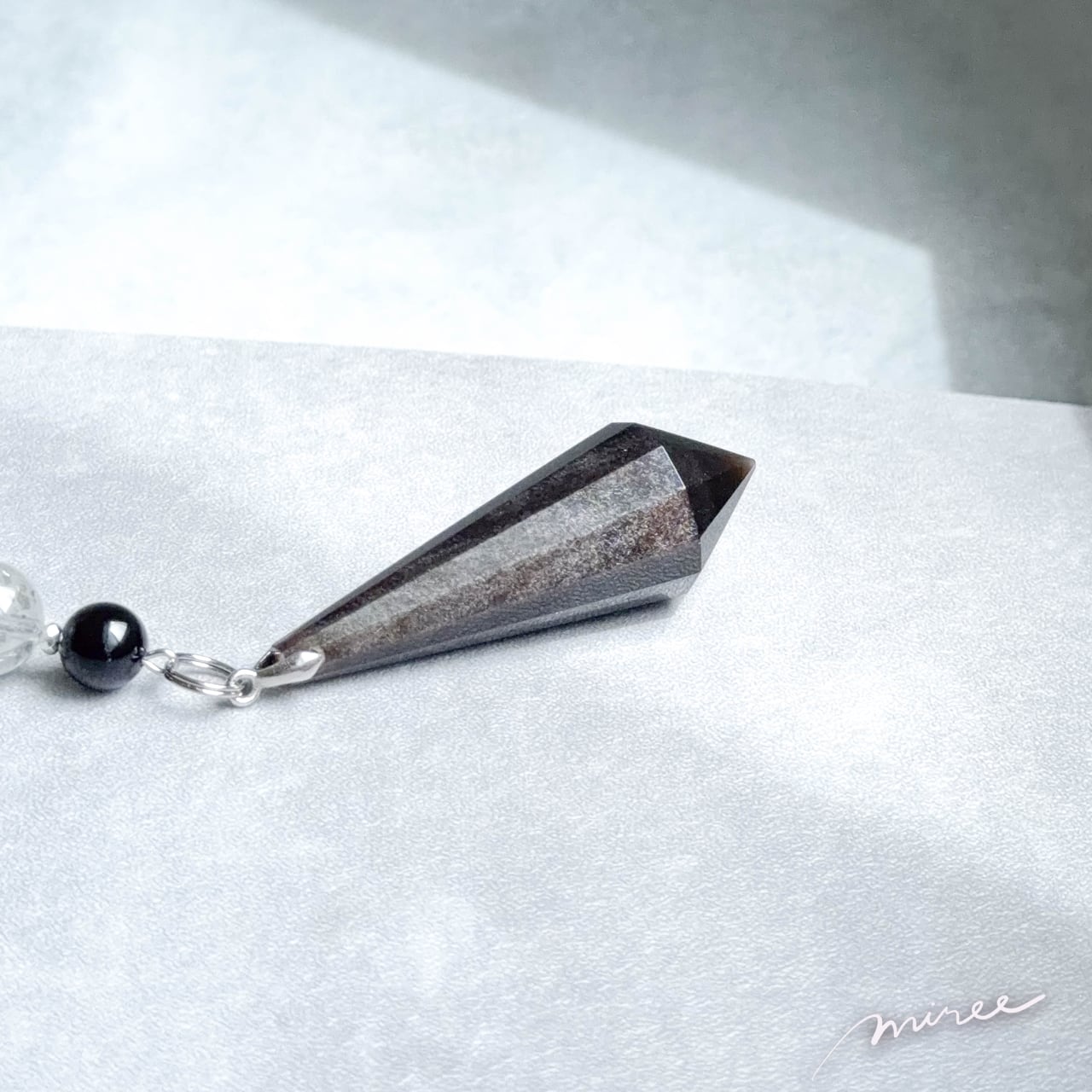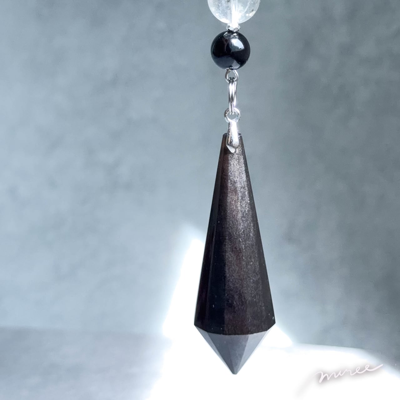 潜在意識を現実に引き上げるペンデュラム【シルバーオブシディアン×パイライトインクォーツ】silver obsidian pendulum